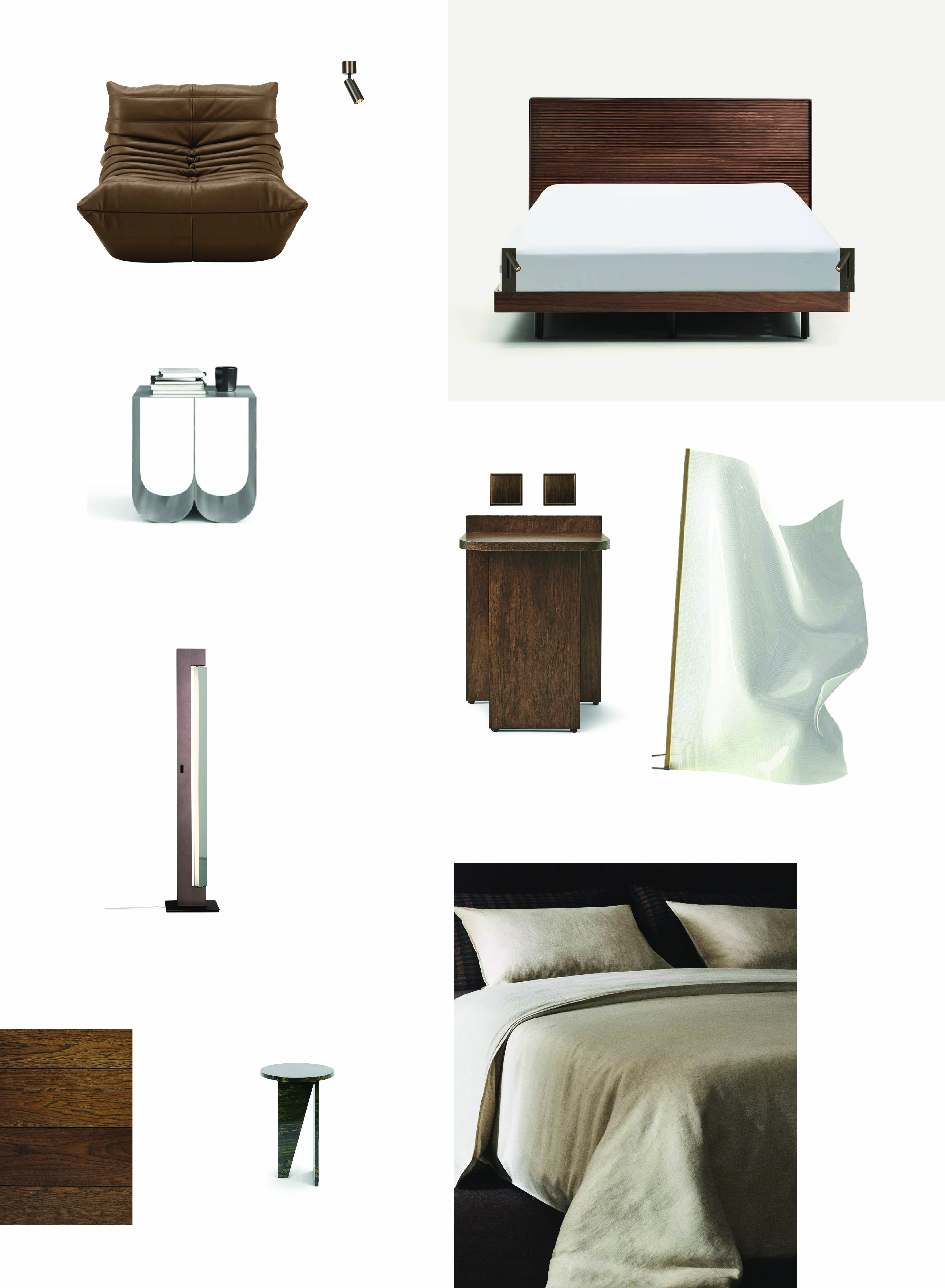 exterior shot create bedroom design based on the attached products file