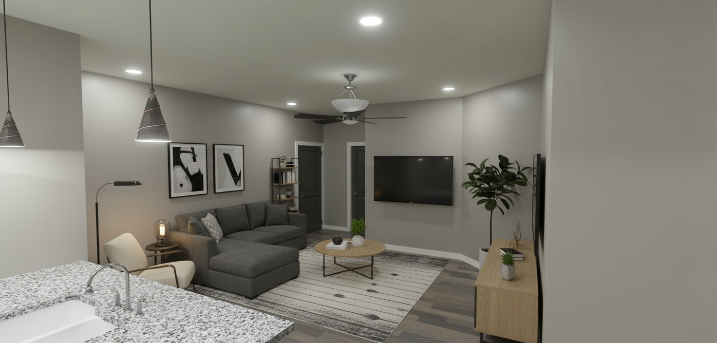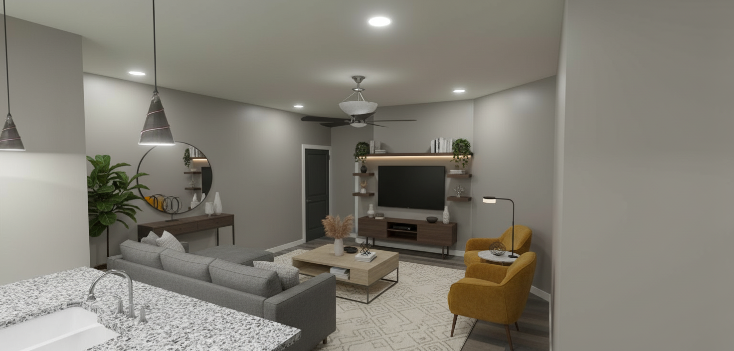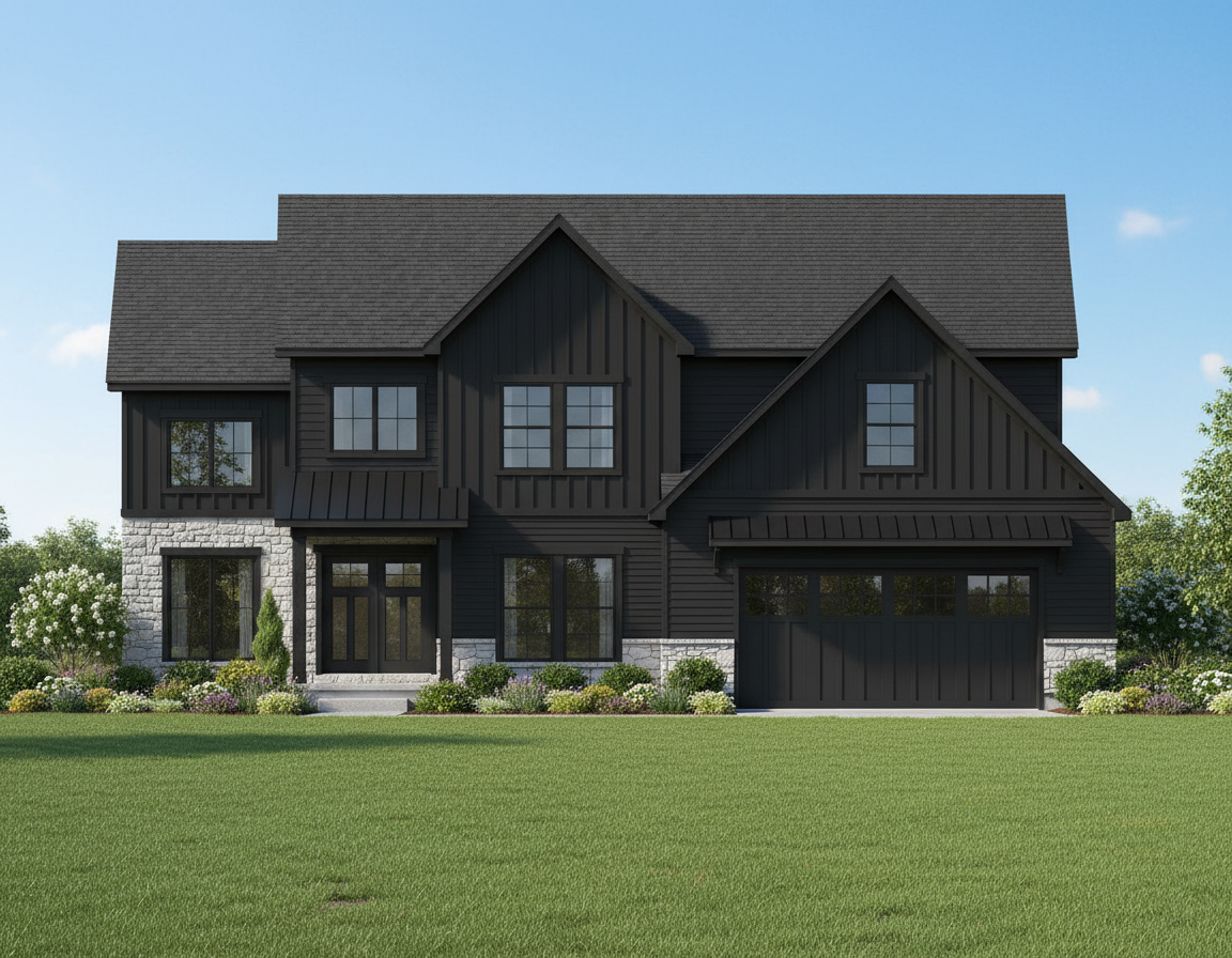a manicured lawn layered flower beds low maintenance shrubs native plants stone pathway leading to the entrance