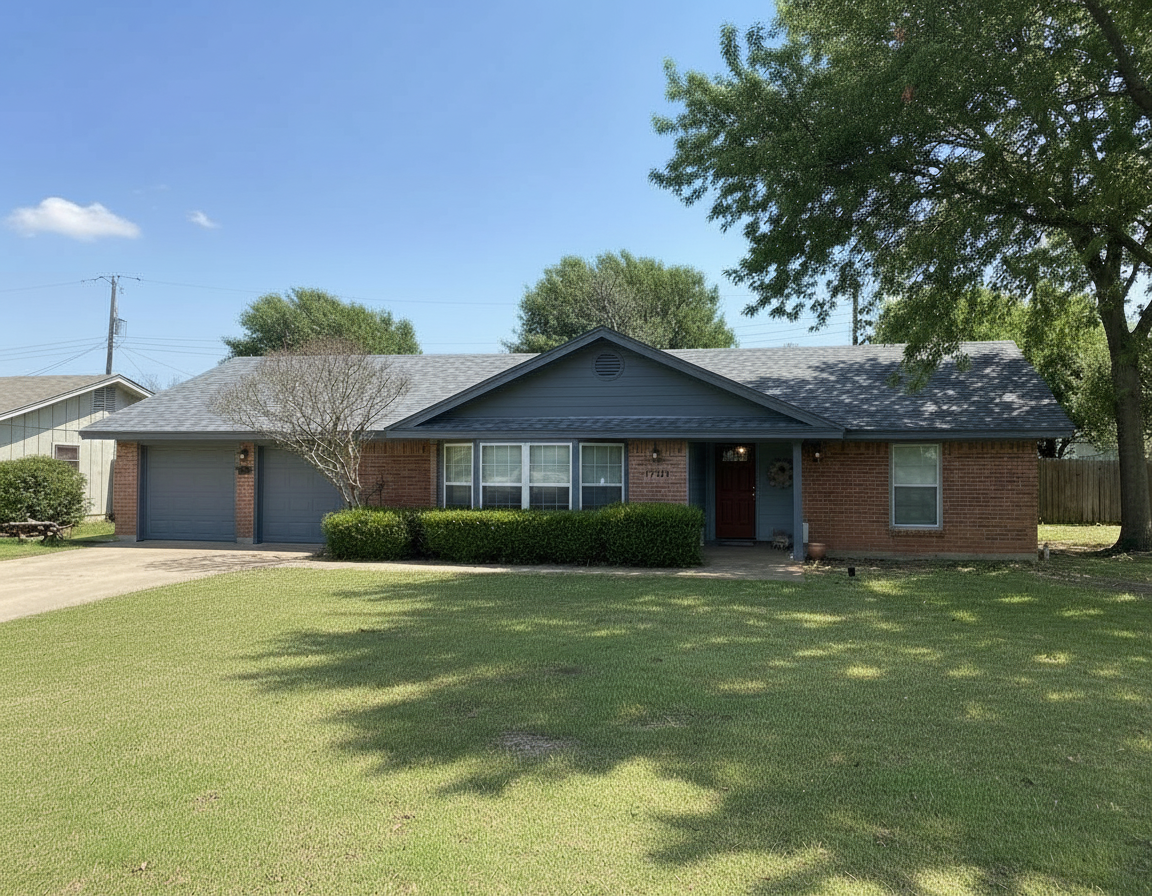 change all the gray color to deep blue paint the brick a sunny yellow color