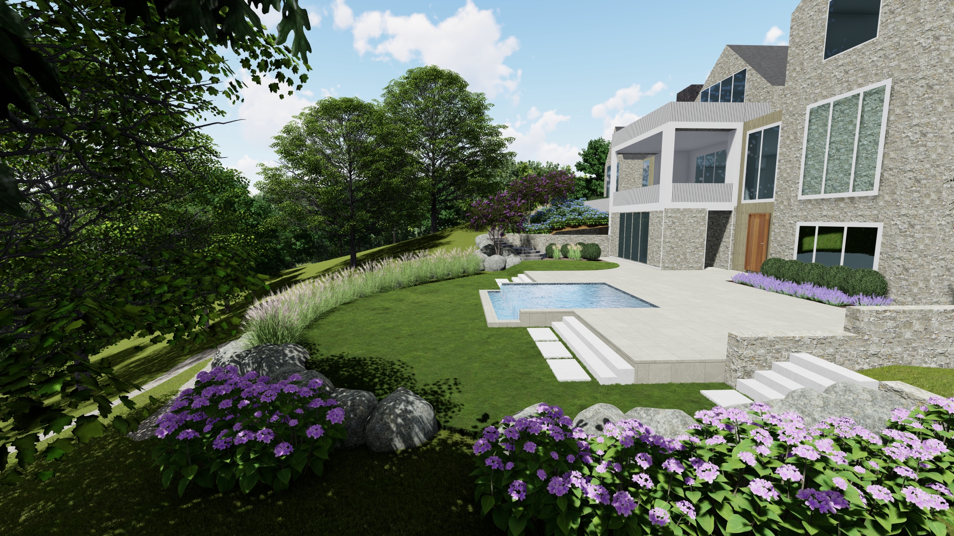 make the house materials look more realistic make the windows look better and make the lawn look better add pool furniture