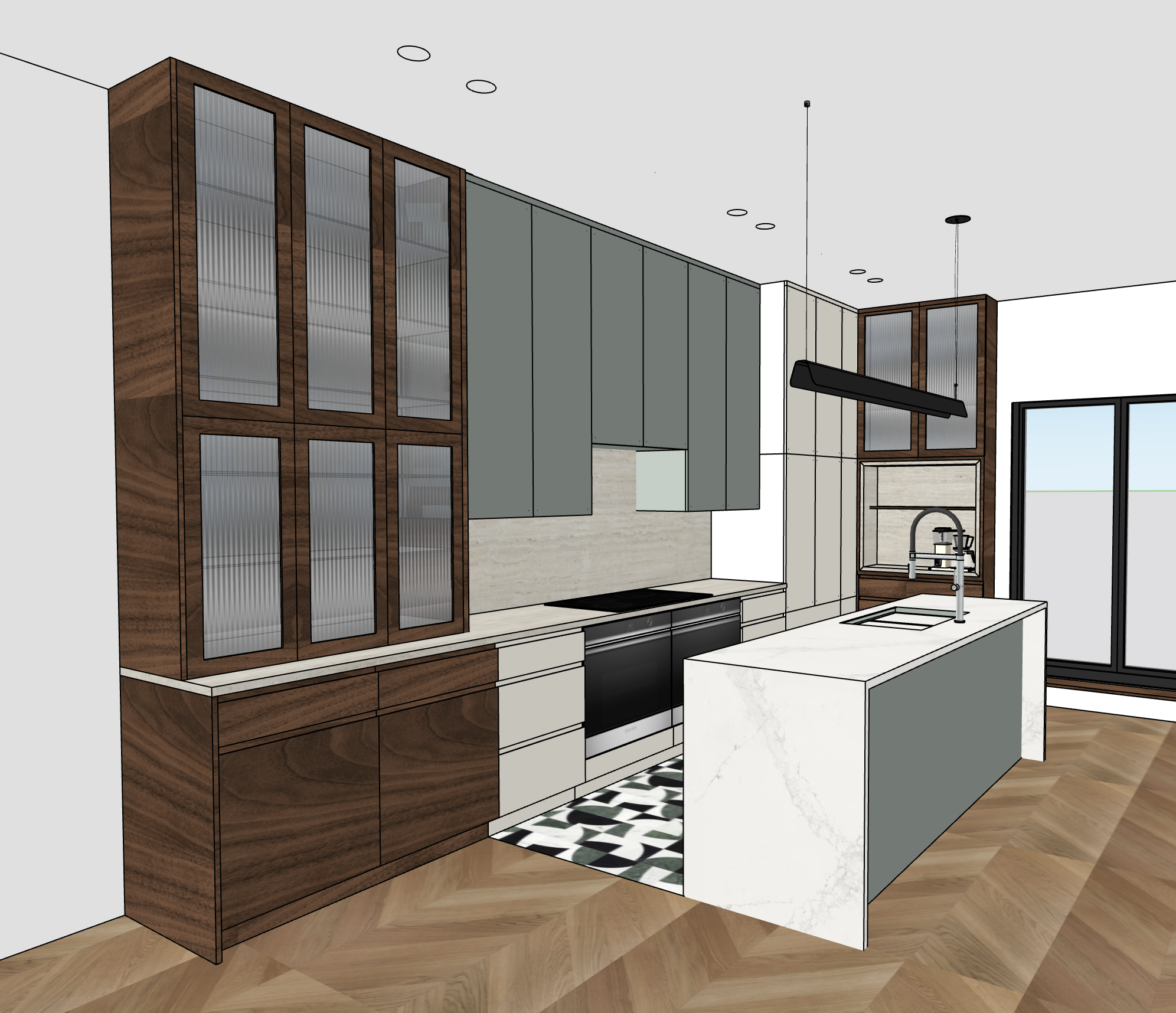 minimalism interior shot render this kitchen to be photorealistic all architecture