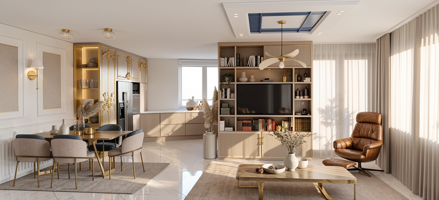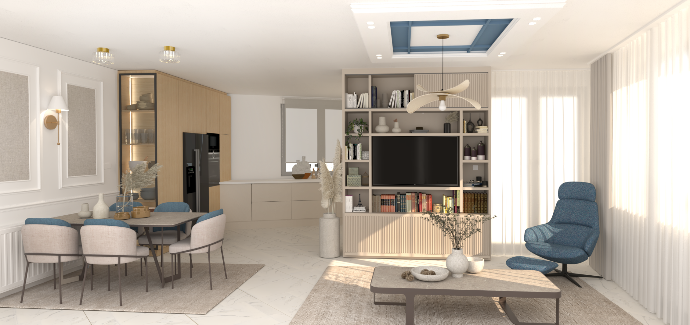 make a photorealistic image keep the colors do not add anything to the image leather sofa do not change shape wardrobe color angora beige egger