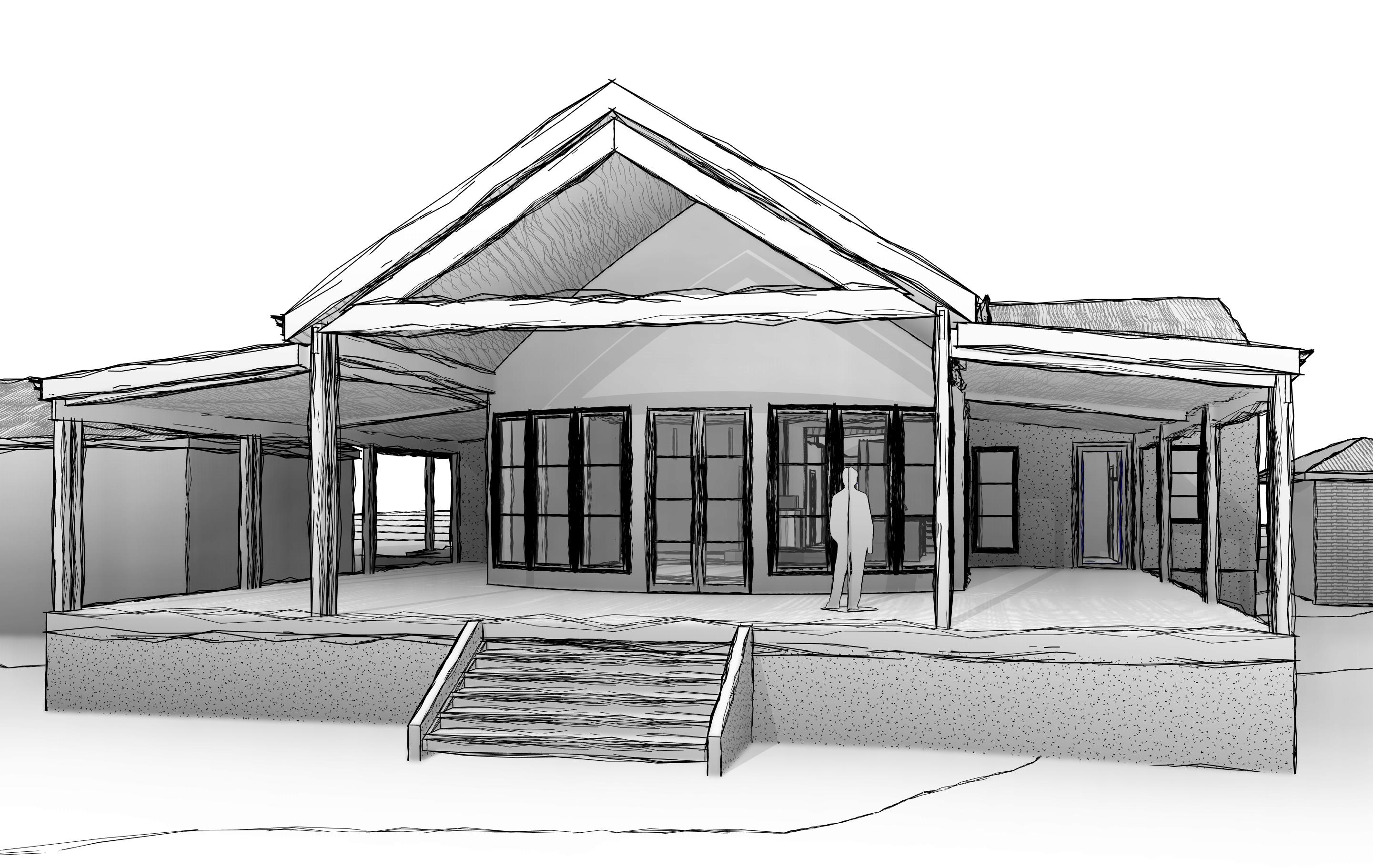 a australian country s home with gum trees in the distance the exterior walls are rendered in a warm sand beige the roof is in galvanised iron and the window frames in dark wood the wooden beams are deep oak brown on the porch there are also timber wood boards the steps leading up are in a natural stone texture the scene is set in a serene golden sunset atmosphere casting soft warm lighting across the facade creating a welcoming and tranquil ambiance architecture