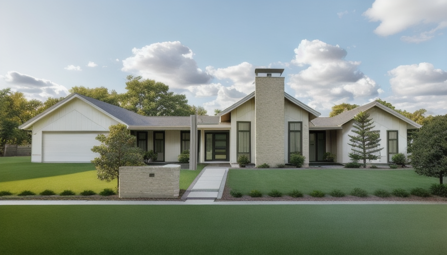 minimalism exterior shot convert this elevation into a realistic 3d exterior rendering choose a cohesive timeless color palette appropriate for the architectural style use complementary siding and roof tones with natural contrast add professional landscaping and realistic driveway balanced daylight lighting builder grade but clean and polished presentation maintain architectural accuracy preserve proportions do not alter structural layout architecture