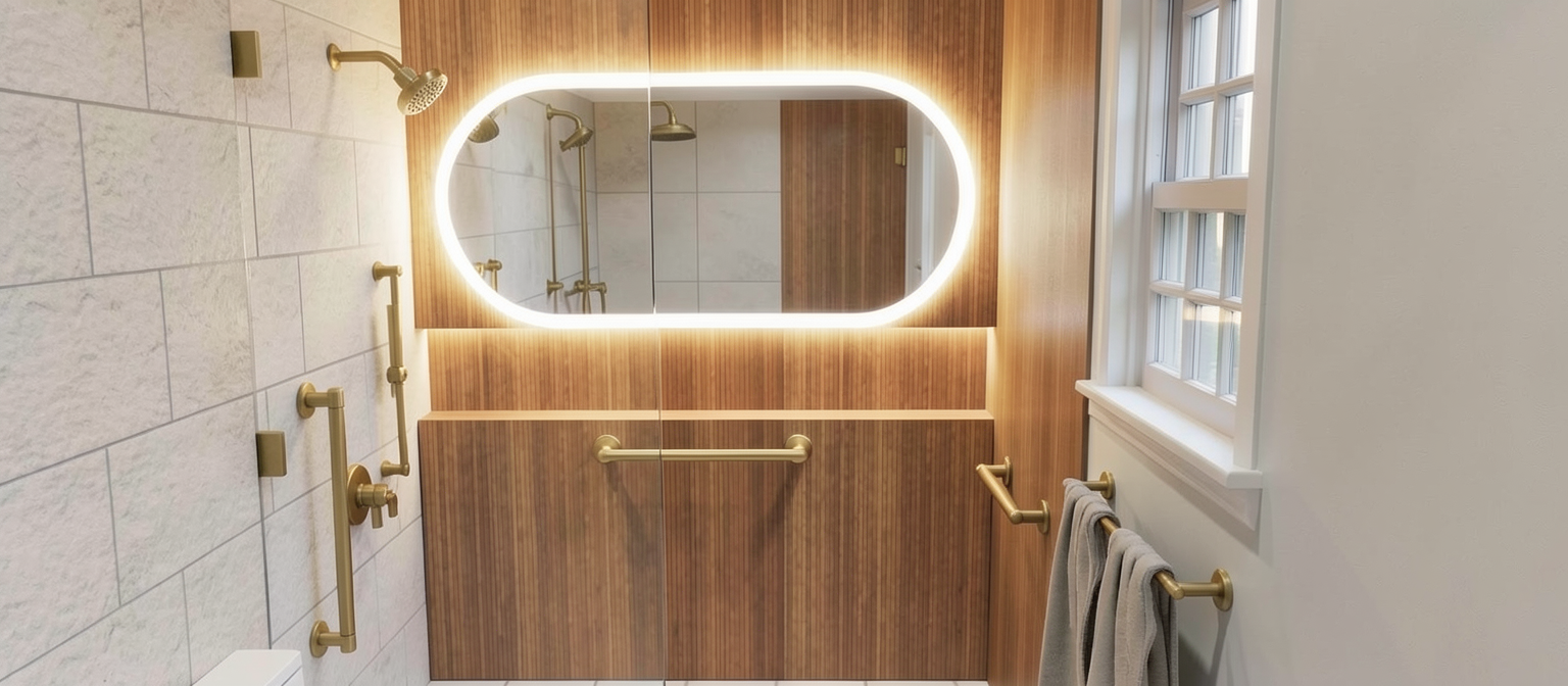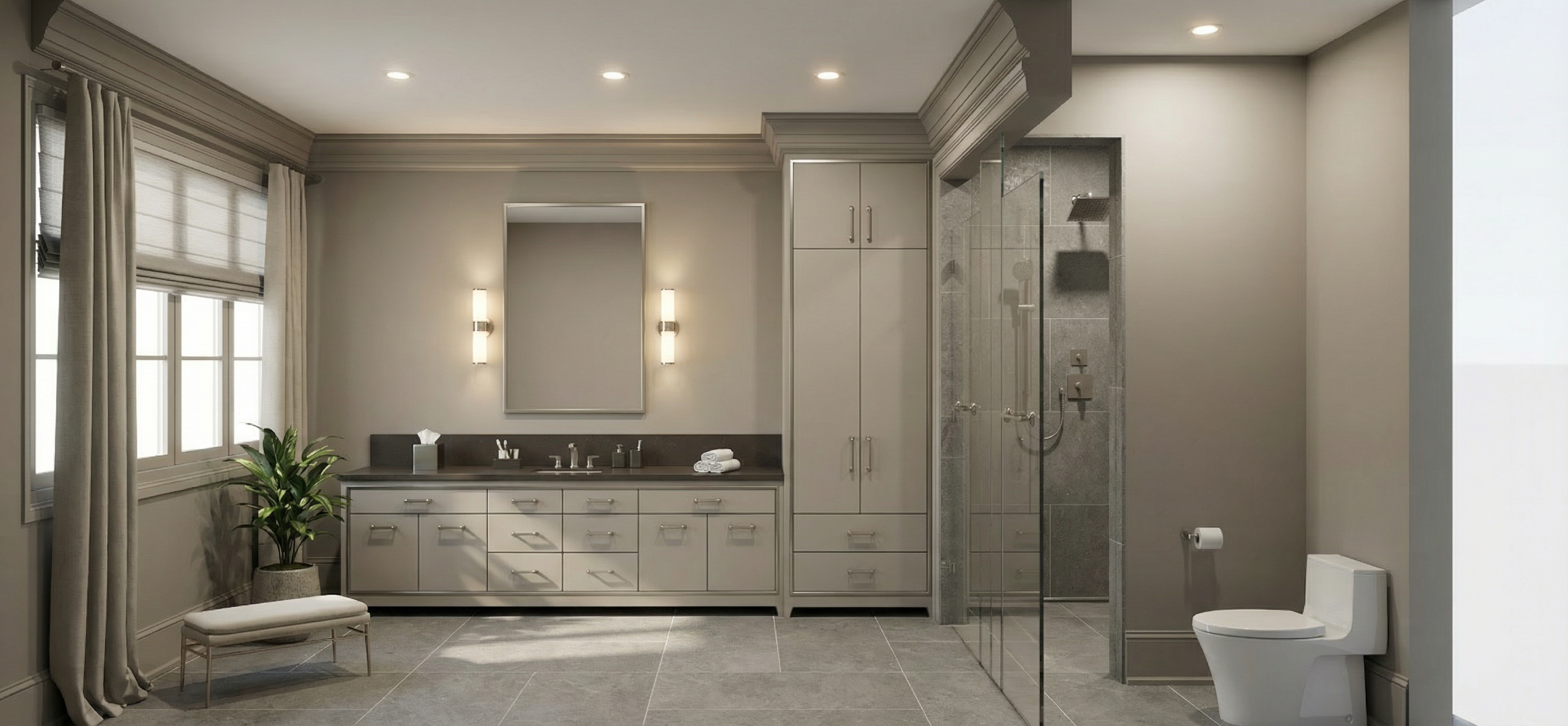 edit the existing kitchen render while preserving all original proportions lighting materials colors furniture and camera angle changes only do not add new elements change the range hood material to the same color finish used in millwork with a smooth reflective surface satin elegant premium look