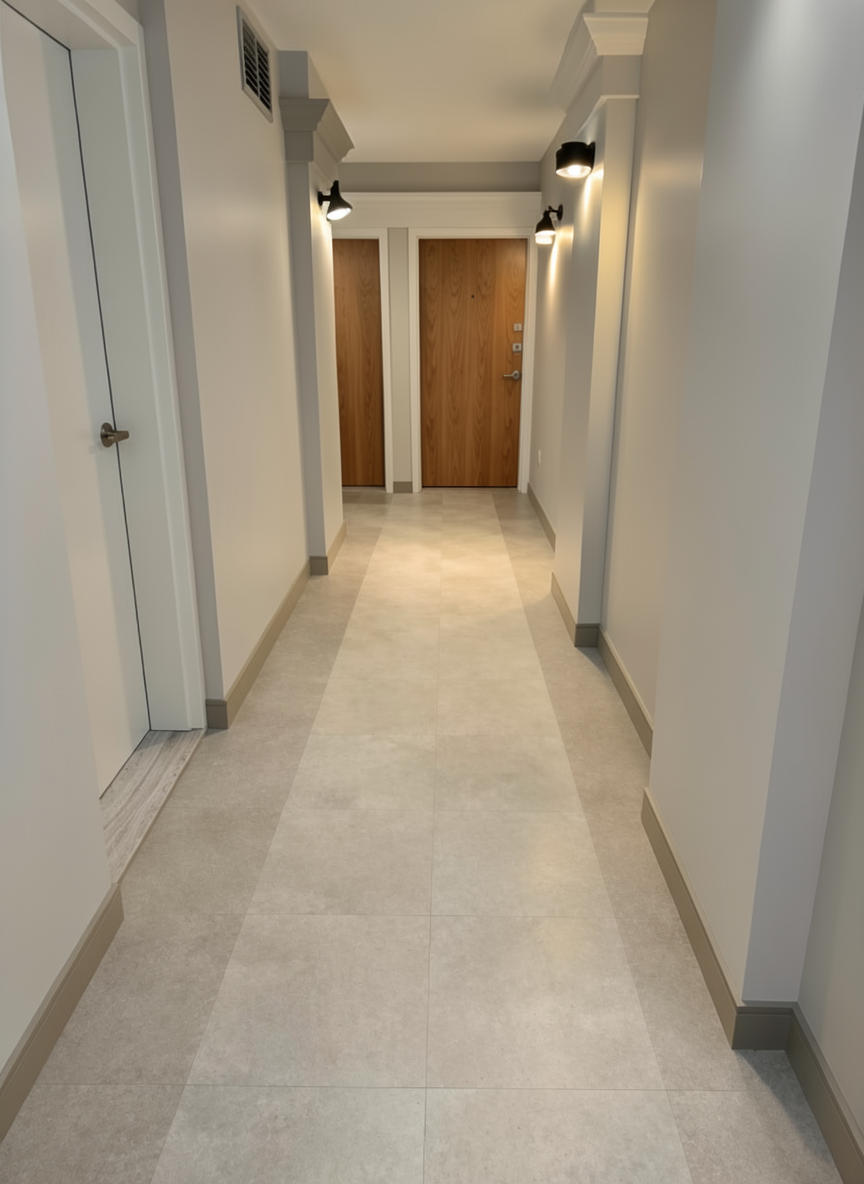 replace existing light fixtures with new modern ones in neutral light tones with clean square lines in same locations as existing lights enhance lighting and overall mood do not change any other finishes