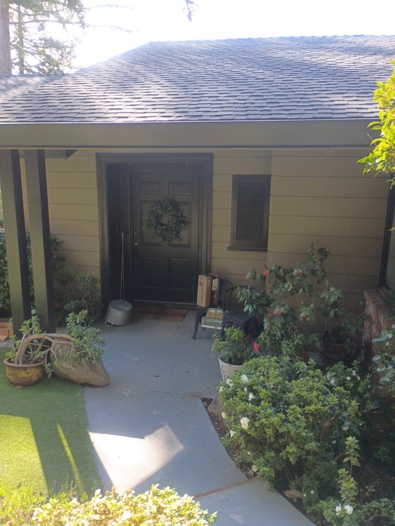 turn image into midcentury modern entry with glass door show me light wall exterior color