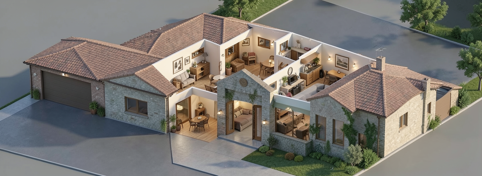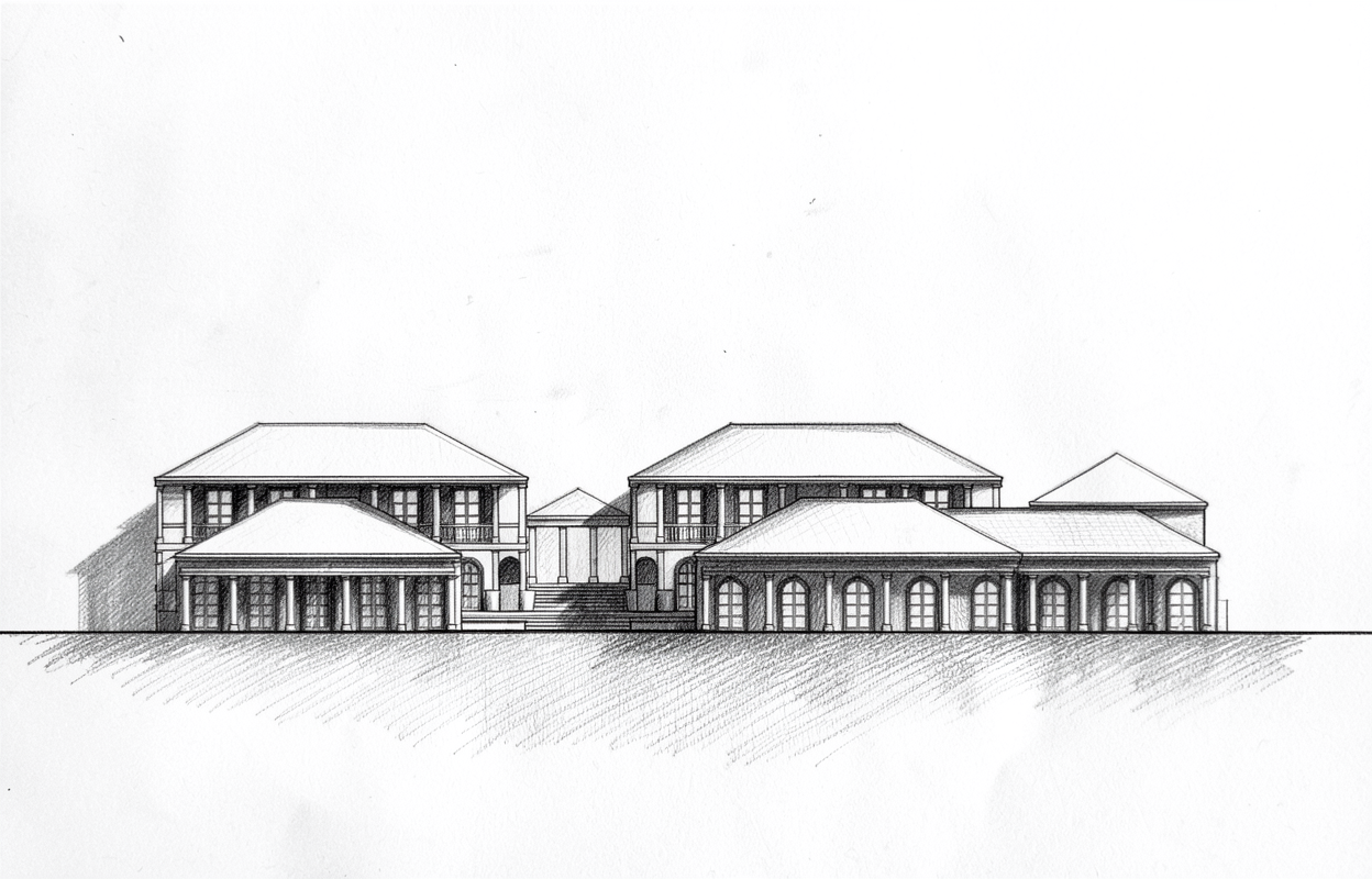 turn these elevation into an architectural hand pencil sketch in black and off white beige keep the same exact view no perspective add drop shadows