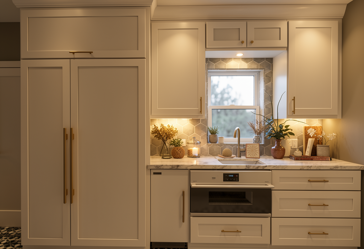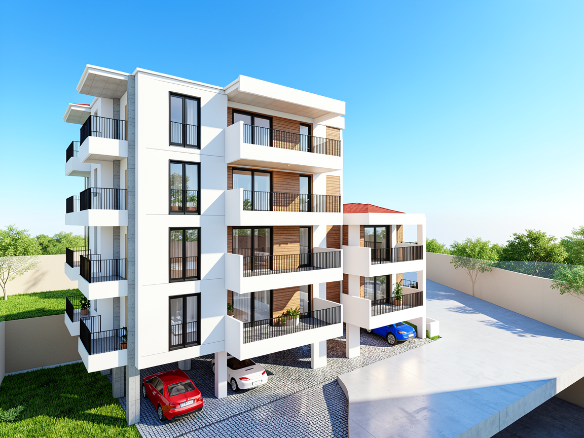 render realistically with landscaping please angle the garage doors to the right make the white siding a beige taupe greyish white color horizontal siding