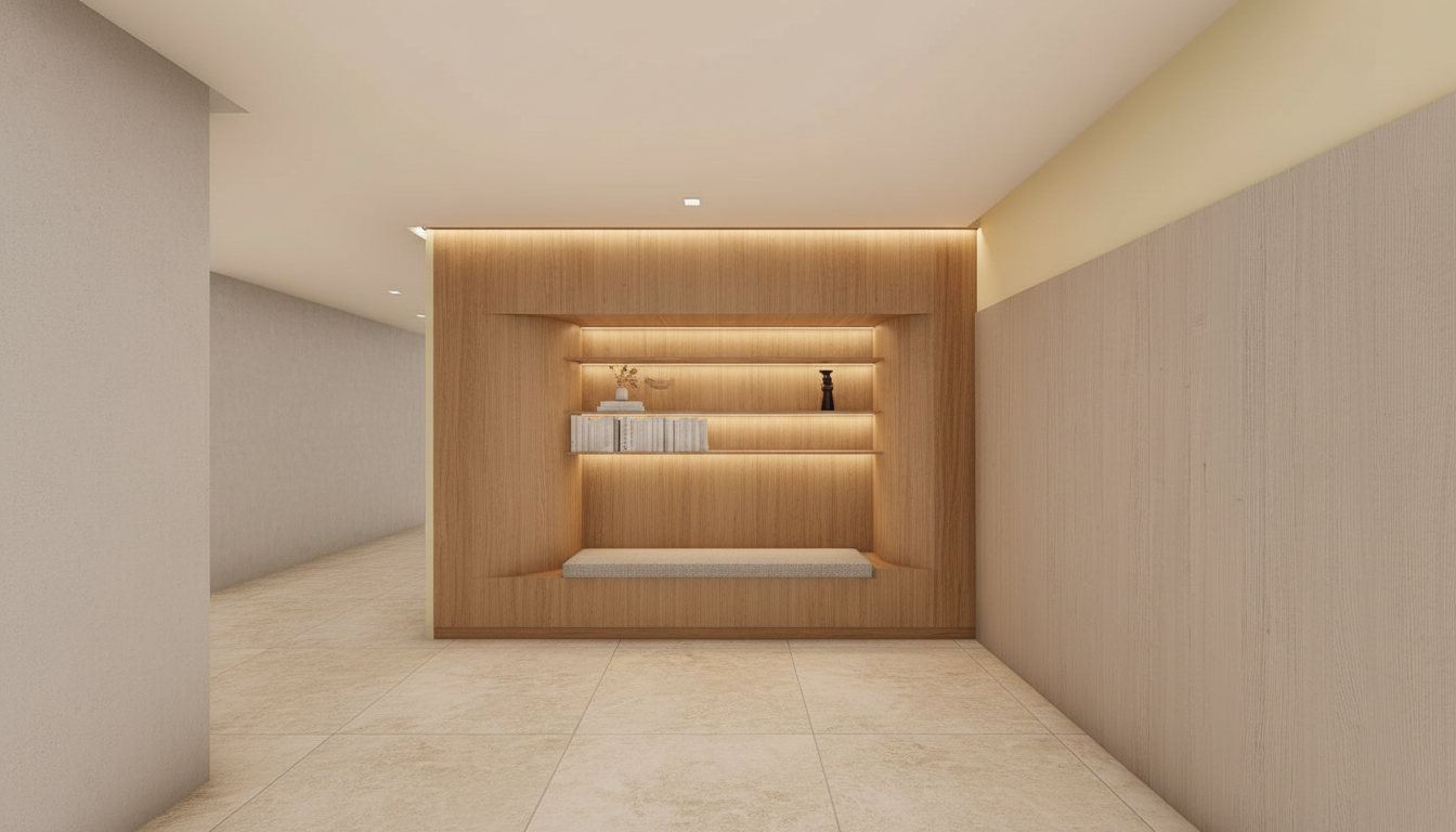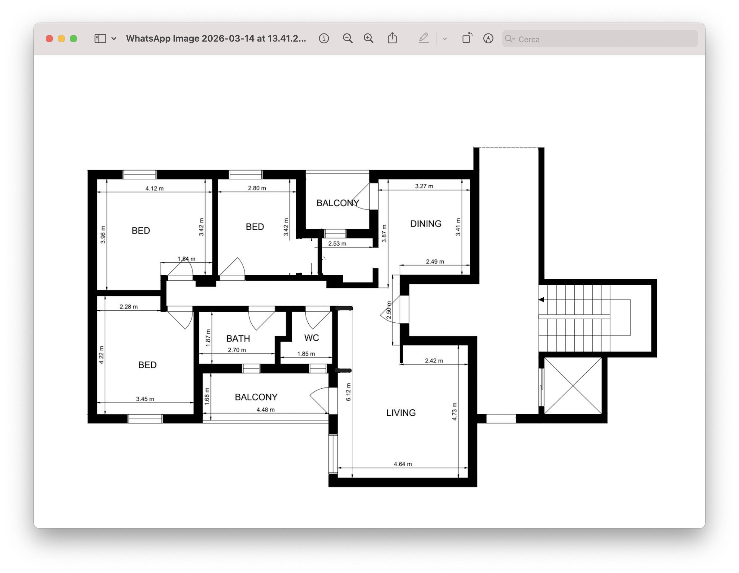 create a stunning architectural rendering of a modern home based on the floor plan i attached use a clean sophisticated style with a serene atmosphere the walls should be a warm light beige floors are a light oak wood with a polished finish use large windows with sleek silver frames to enhance natural lighting for the dining and living areas include minimalist furniture in neutral tones with accents of deep blue and teal add lush green plants for a touch of nature the balconies should have glass railings and cozy seating in soft gray overall aim for an open airy feel with an inviting and elegant ambiance find a way to enlarge the closet room for the smallest bedroom do not modify balconies