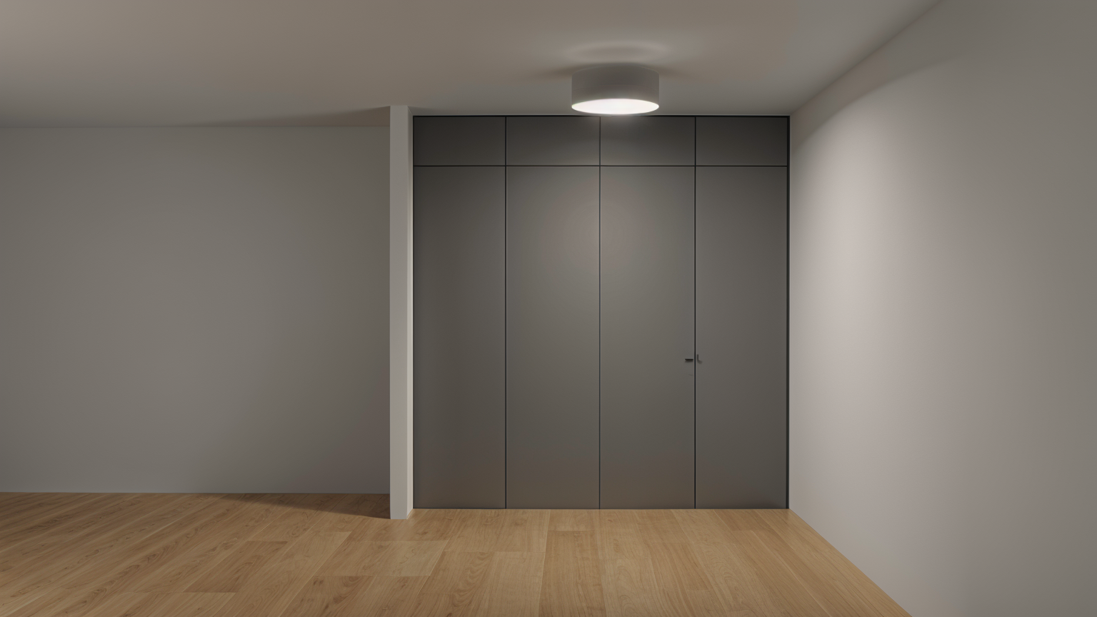 interior visualization of a modern office corridor the corridor is flanked by shelves with rounded corners on both sides with a soft seating area integrated industrial style ceiling with exposed pipes and conduits large circular ring shaped pendant lights are hanging above the corridor furniture materials metal translucent plastic orange gradient white and purple colors the floor is gray carpet tiles potted plants hanging from the ceiling dramatic lighting photorealistic 8k wide angle shot