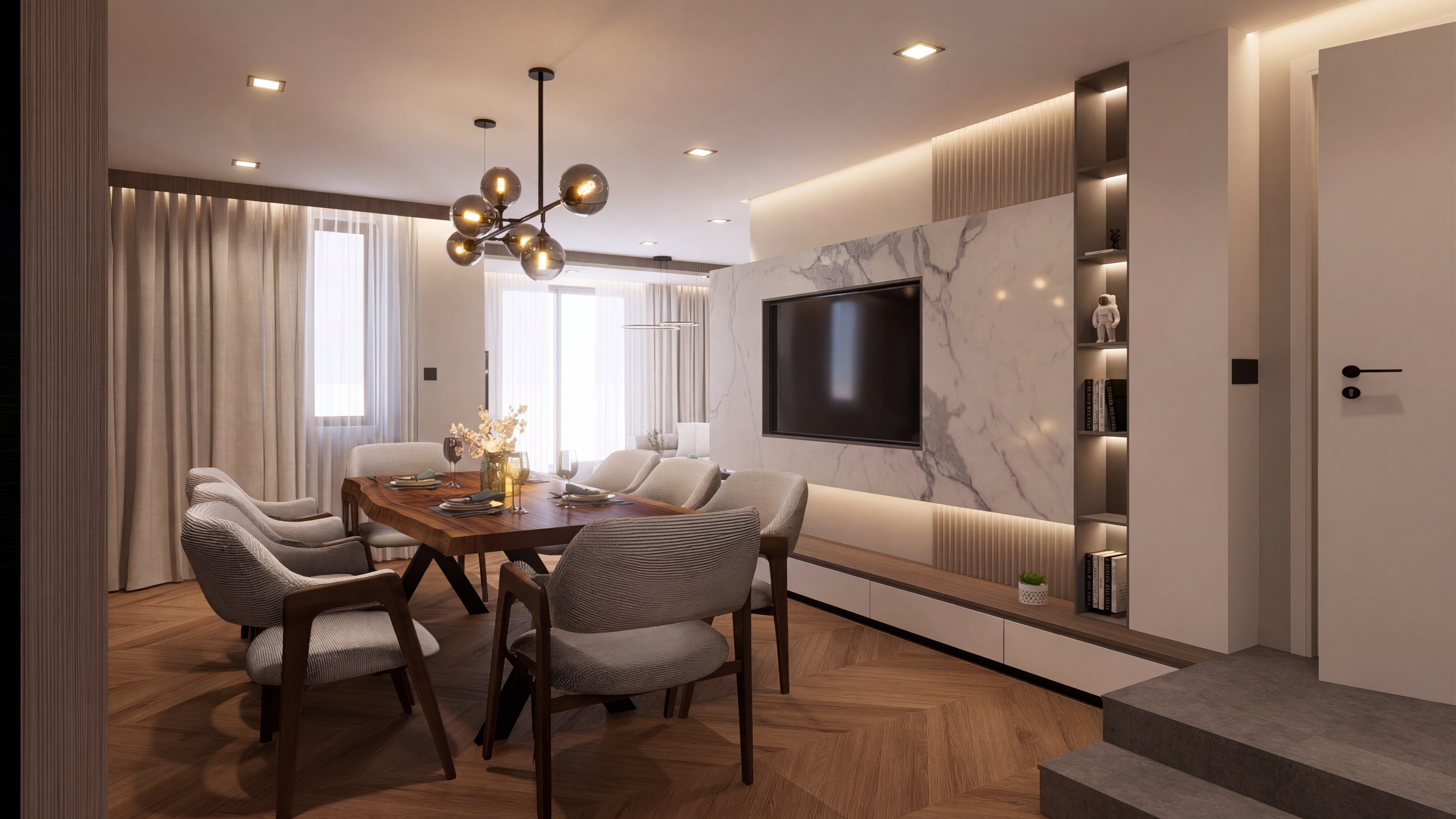 add french iron doors to openings in this space and wood to the ceiling make a ling space looking towards wall with a tv the sofa is grey leather sectional with coffee table and two chairs keep the same shape in walls and the sofa is sectional