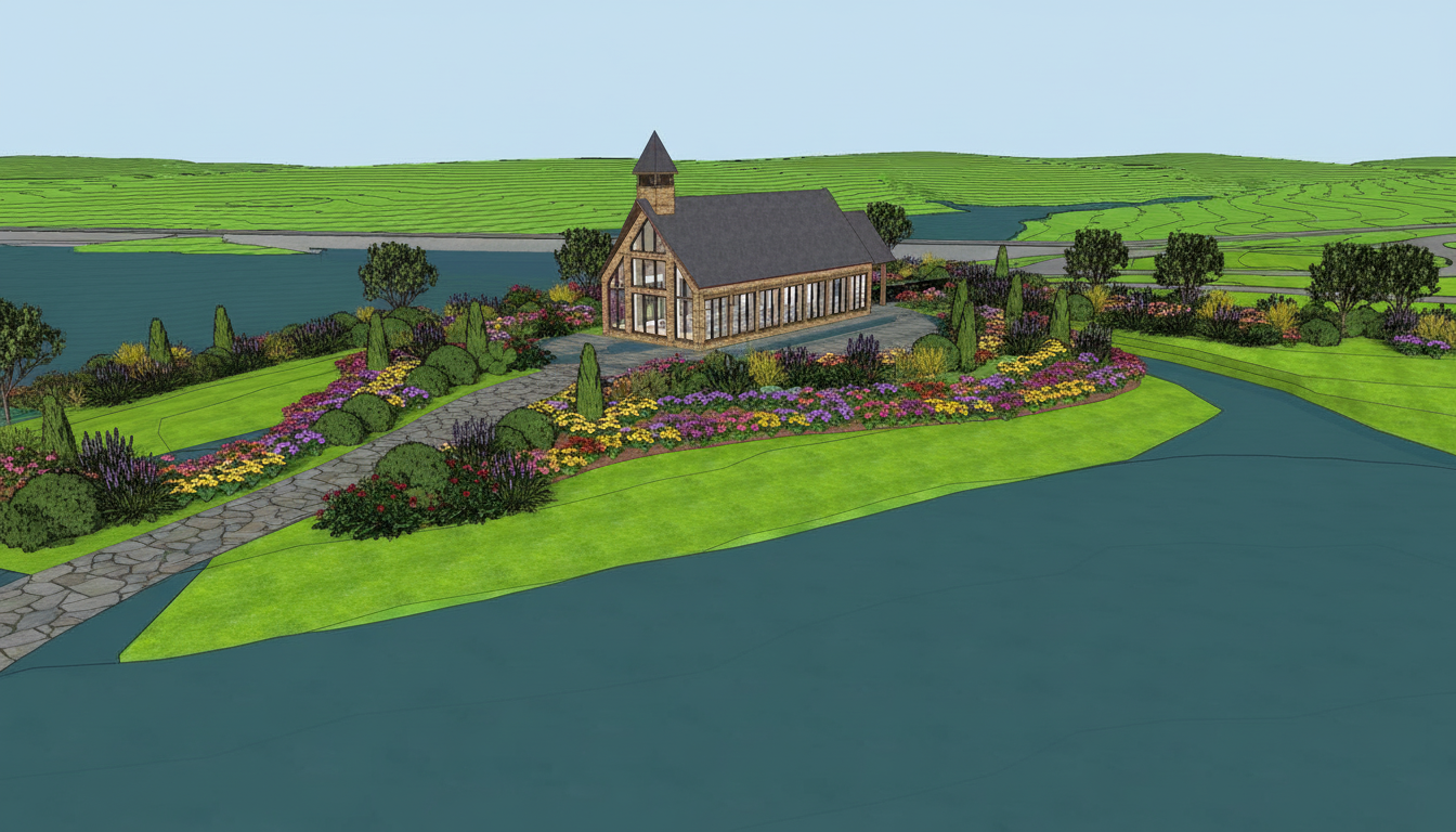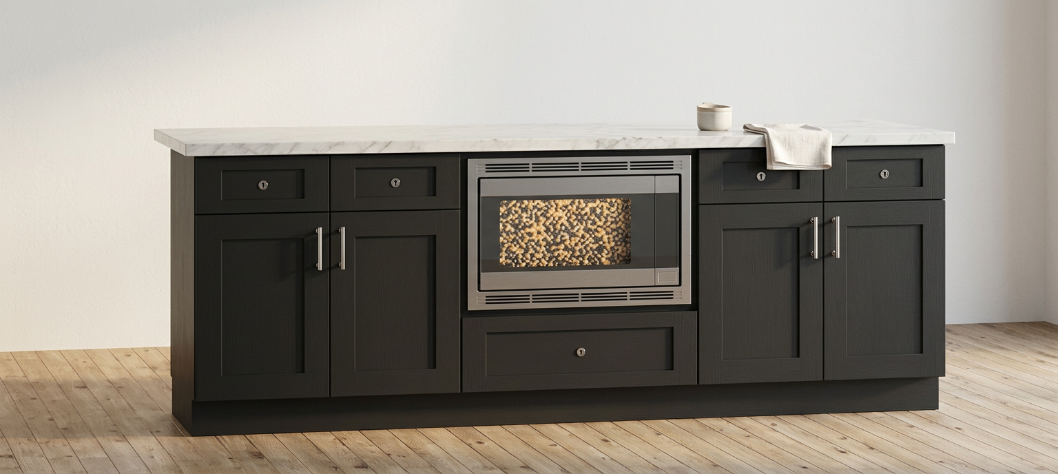 render a high end designer kitchen from the moodboard featuring a slab of emerald green quartzite as the countertops and backsplash show any light fixtures as illuminated and add warm sunlight from nearby windows ensure there are several plants around the space and staged with food prep emerald green quartzite has a jade green background with white and amber fractured veins