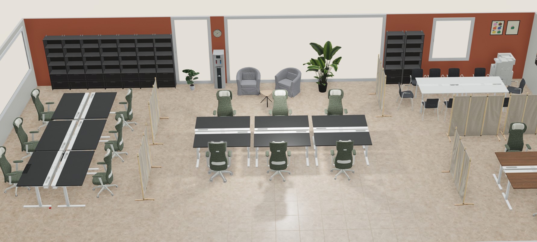 peux tu embellir l ensemble du bureau mettre un sol en b ton liss vert mur blanc