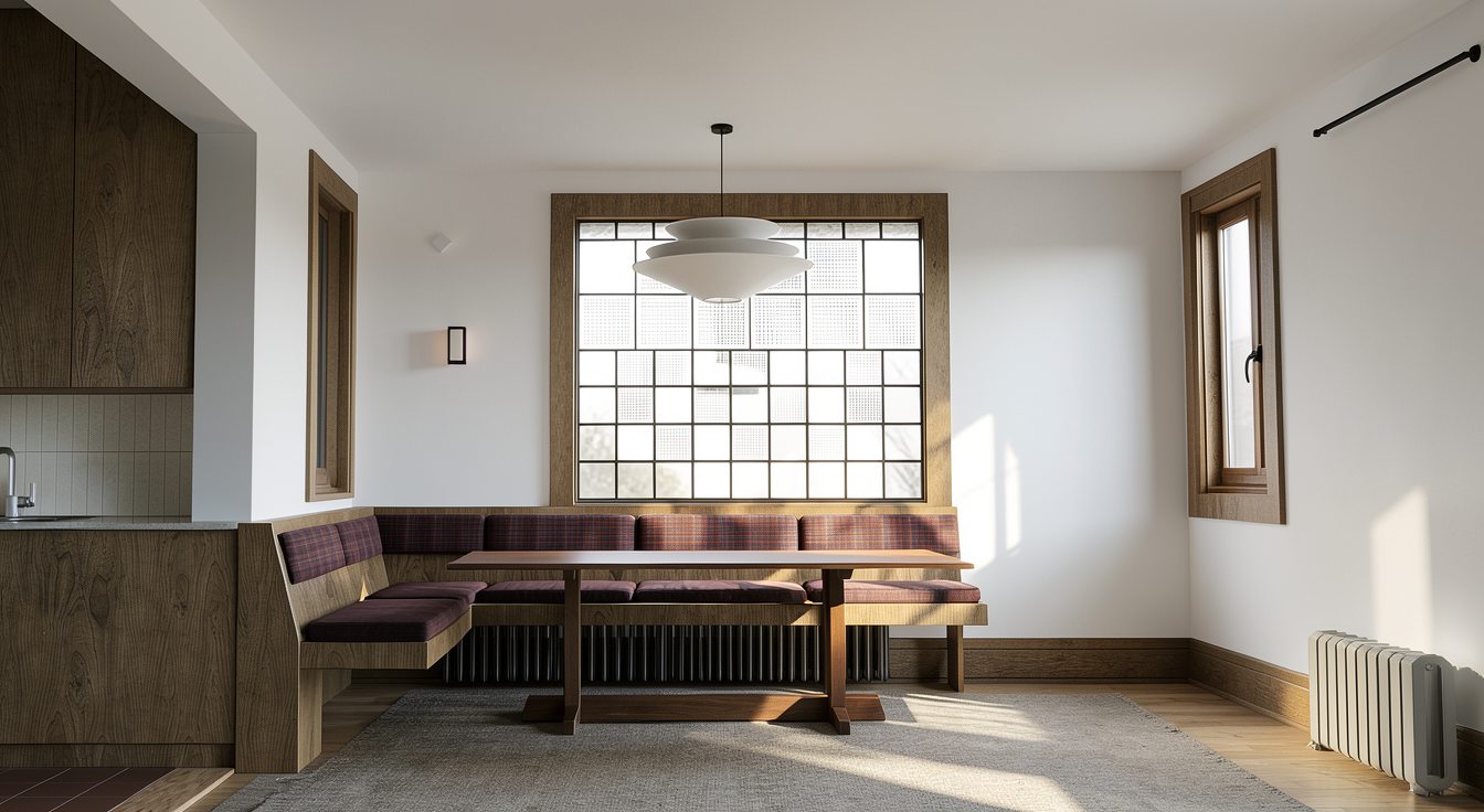 walls and door to have a creamy white plaster finish countertops to be a violetta calacatta marble stone pendants to be brass and white cabinetry to be a light brown mushroom colored paint finish arched doors as dark wood and glass ceiling beam as black wood island wood as dark brown wood walls below cabinetry as creamy white plaster finish walls as creamy white plaster finish not rough arched doors as a black wood with glass only 1 ceiling pendant