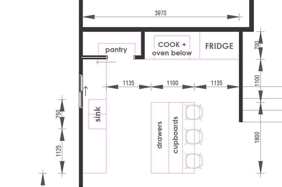 important treat the attached kitchen floor plan as fixed use it only to build the 3d scene and do not redesign anything do not move delete add or resize any walls doors windows cabinets appliances island or clearances keep all dimensions alignments and proportions exactly as drawn just extrude them into 3d generate a single interior perspective from standing eye level looking toward the cooktop wall and island apply a calm contemporary style with light timber joinery neutral stone benchtops minimal hardware integrated appliances and simple dome pendants over the island but keep the layout and geometry identical to the plan focus on realistic lighting materials and detailing only for a photoreal high resolution client presentation render