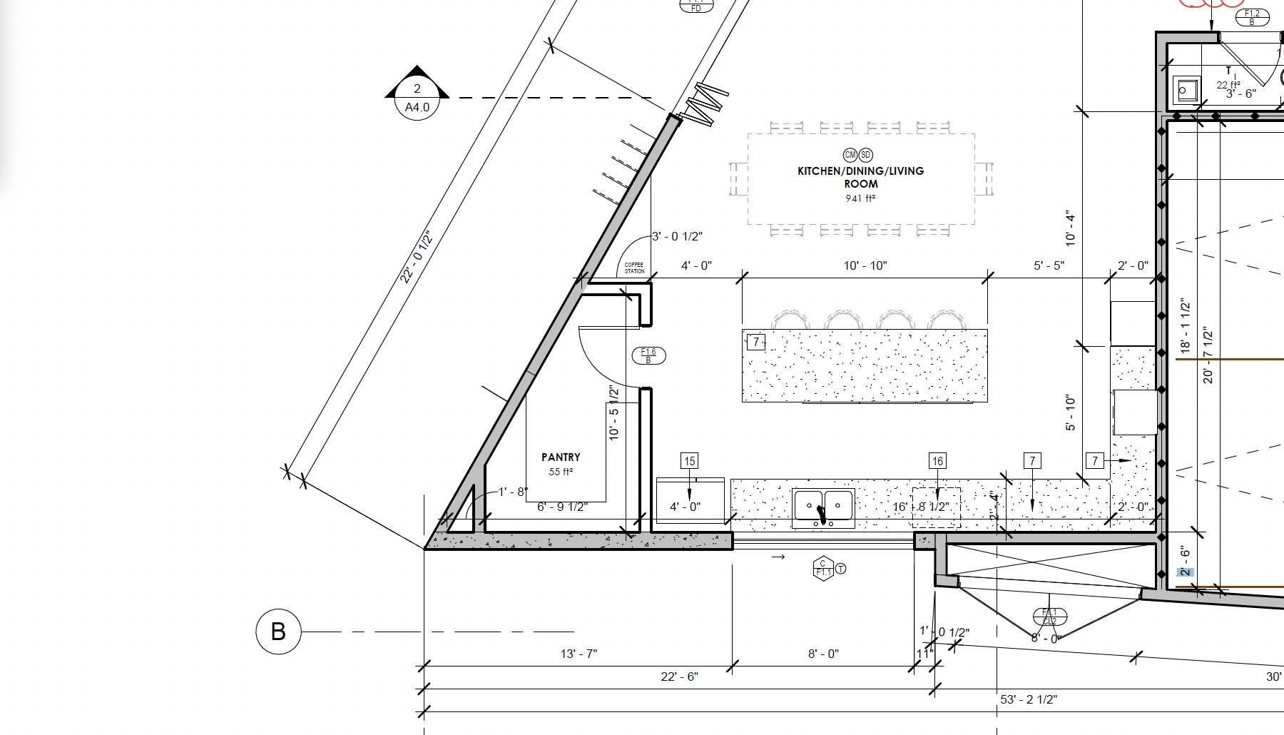 modern warm minimalist kitchen with a balanced mix of walnut and light linen cabinetry designed in an l shaped layout with a long horizontal window above the countertop that must remain uninterrupted and along the back wall where it is on the plans perimeter base cabinets in a soft linen warm off white tone to lighten the space paired with a natural stone countertop and full height stone backsplash with subtle movement upper cabinetry is minimized and broken up with a combination of light linen cabinets open wood shelving and a central focal area with a darker stone or plaster hood feature where the stove is include a built in coffee station niche with shelves and warm integrated lighting large central island with a double thick slab countertop no waterfall edges clean modern detailing seating for four flooring is large format light stone tile lighting includes minimal modern pendants with warm tones and soft under cabinet lighting overall aesthetic is warm layered and textural combining modern architecture with natural materials inspired by high end california coastal and contemporary european kitchens avoid overly dark or heavy feel avoid full walnut wrap cabinetry emphasize contrast openness and material variation