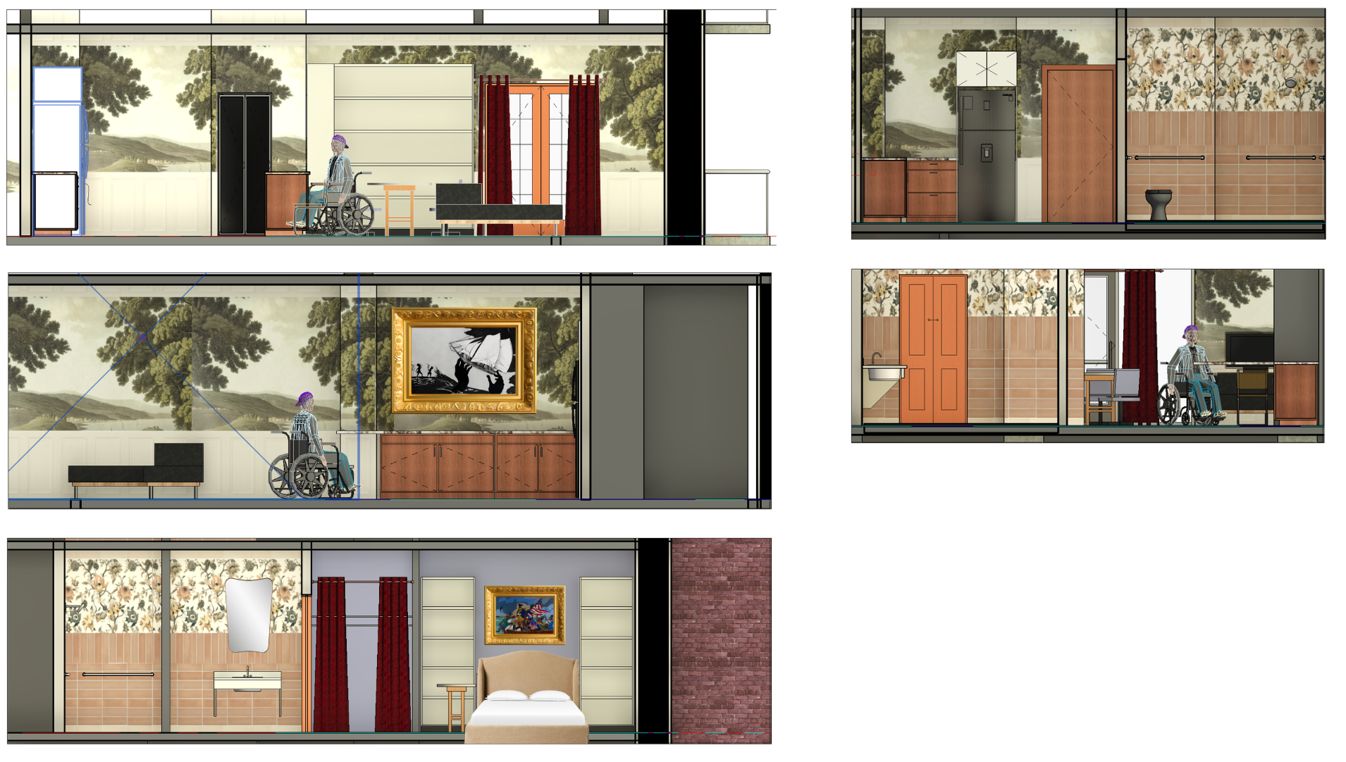 create sketch versions of the attached elevations maintain the materials and colors but give the overall style a sketchy scratchy appearance as if it was hand drawn and colored with marker