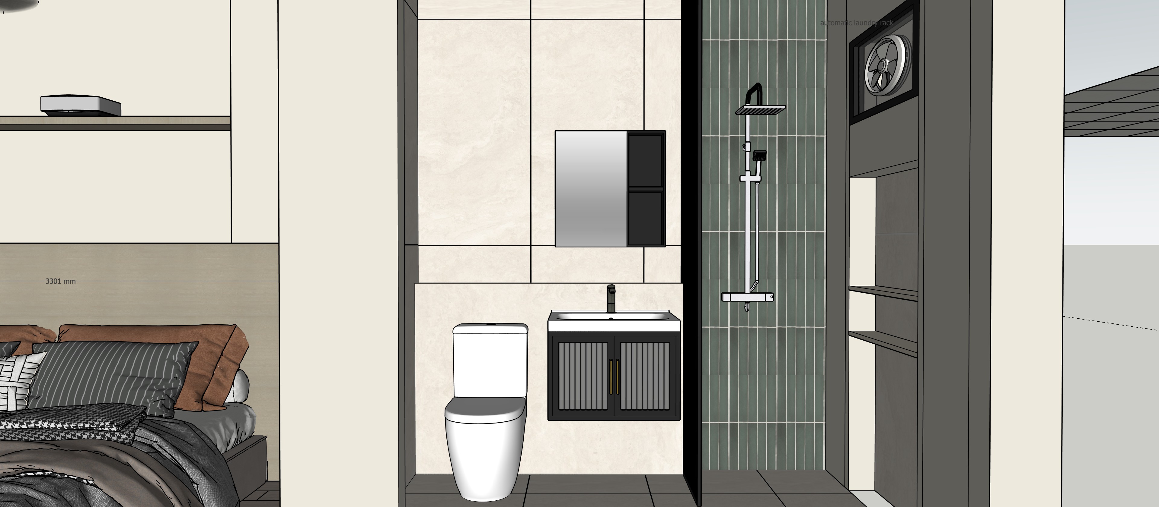 and downlight on ceiling the cream tiles on the wall to be the same on all 4 the green tile stay floor to be in the cream tile as well the grey wall to be in cream tile too make the cream tile matte
