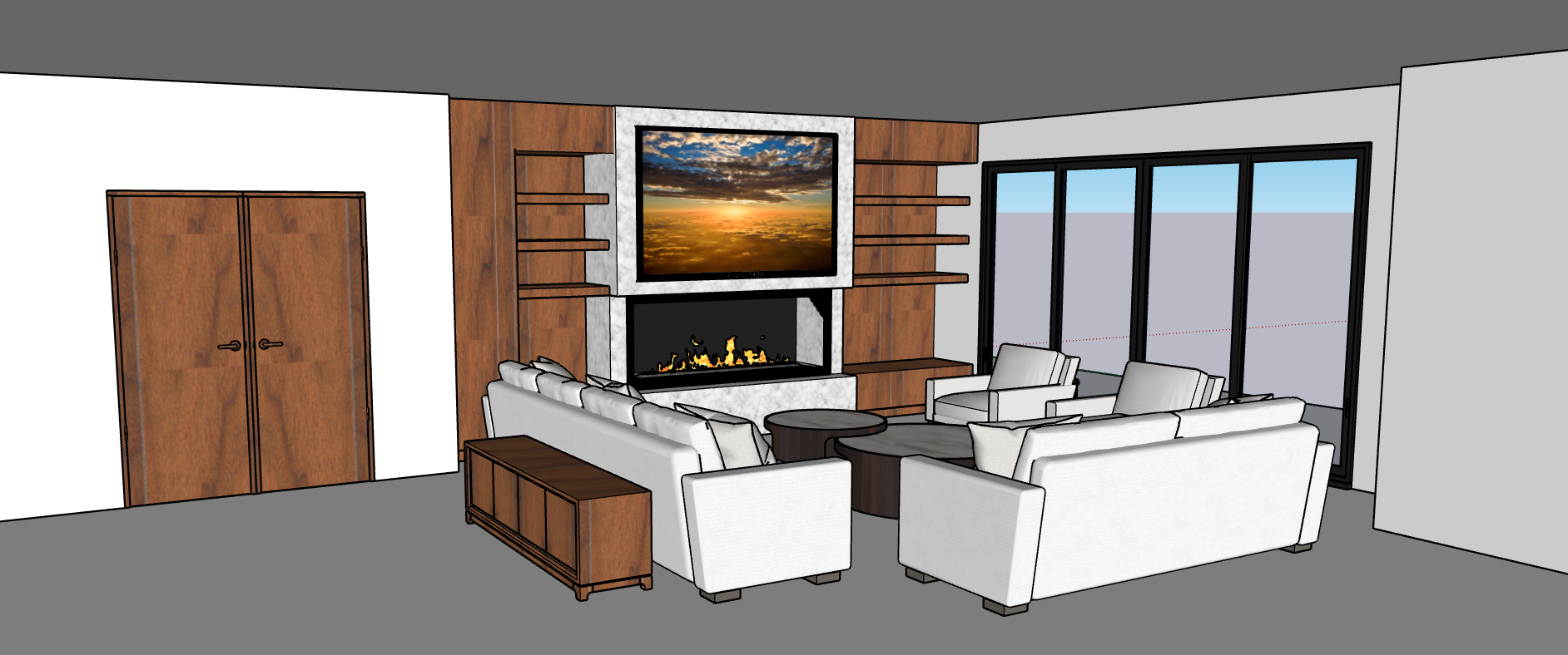 make a photorealistic interior elevation from this 3d screenshot