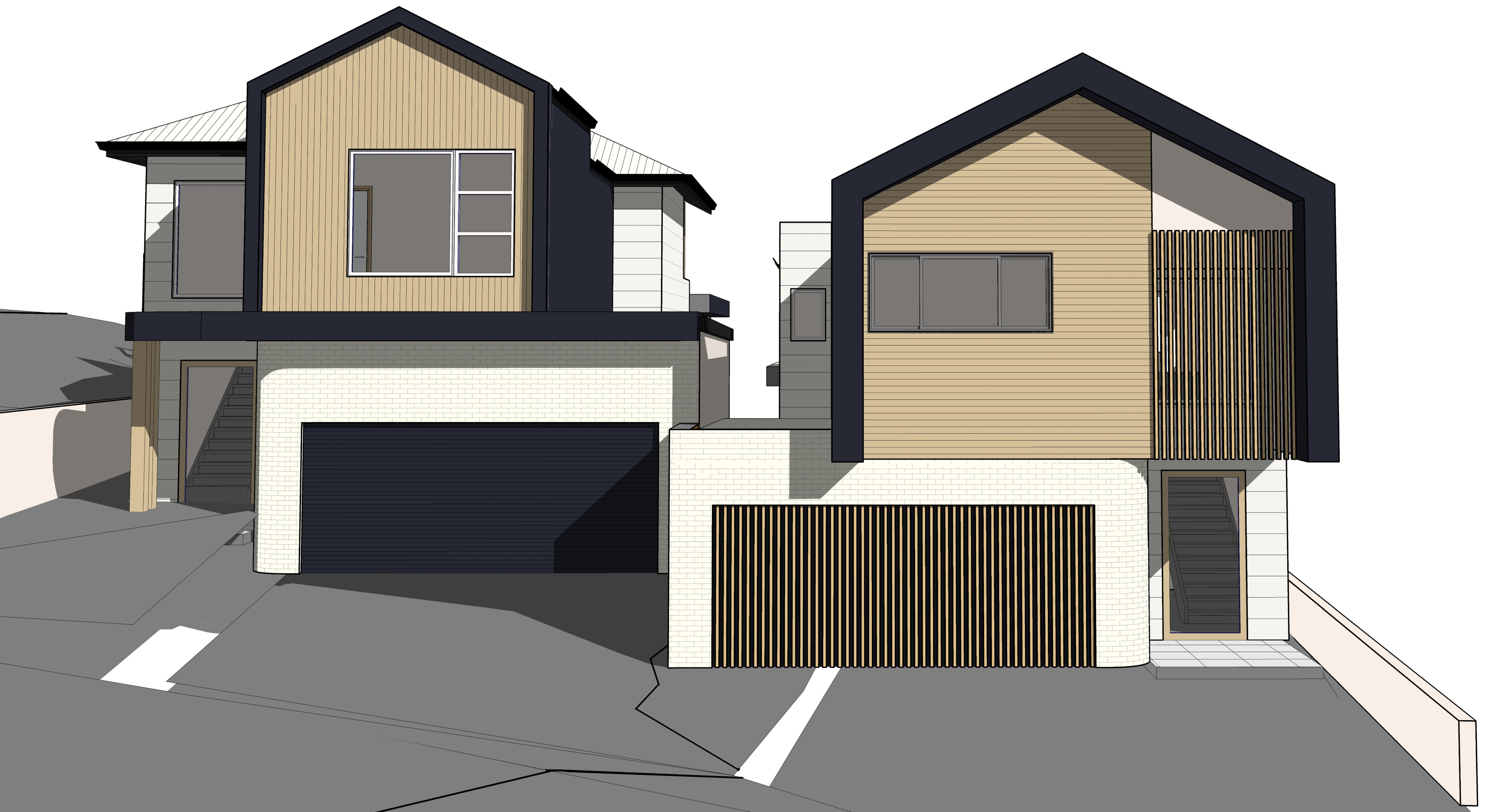 reduce garden bed between garage doors and add driveway in front of right hand side garage door