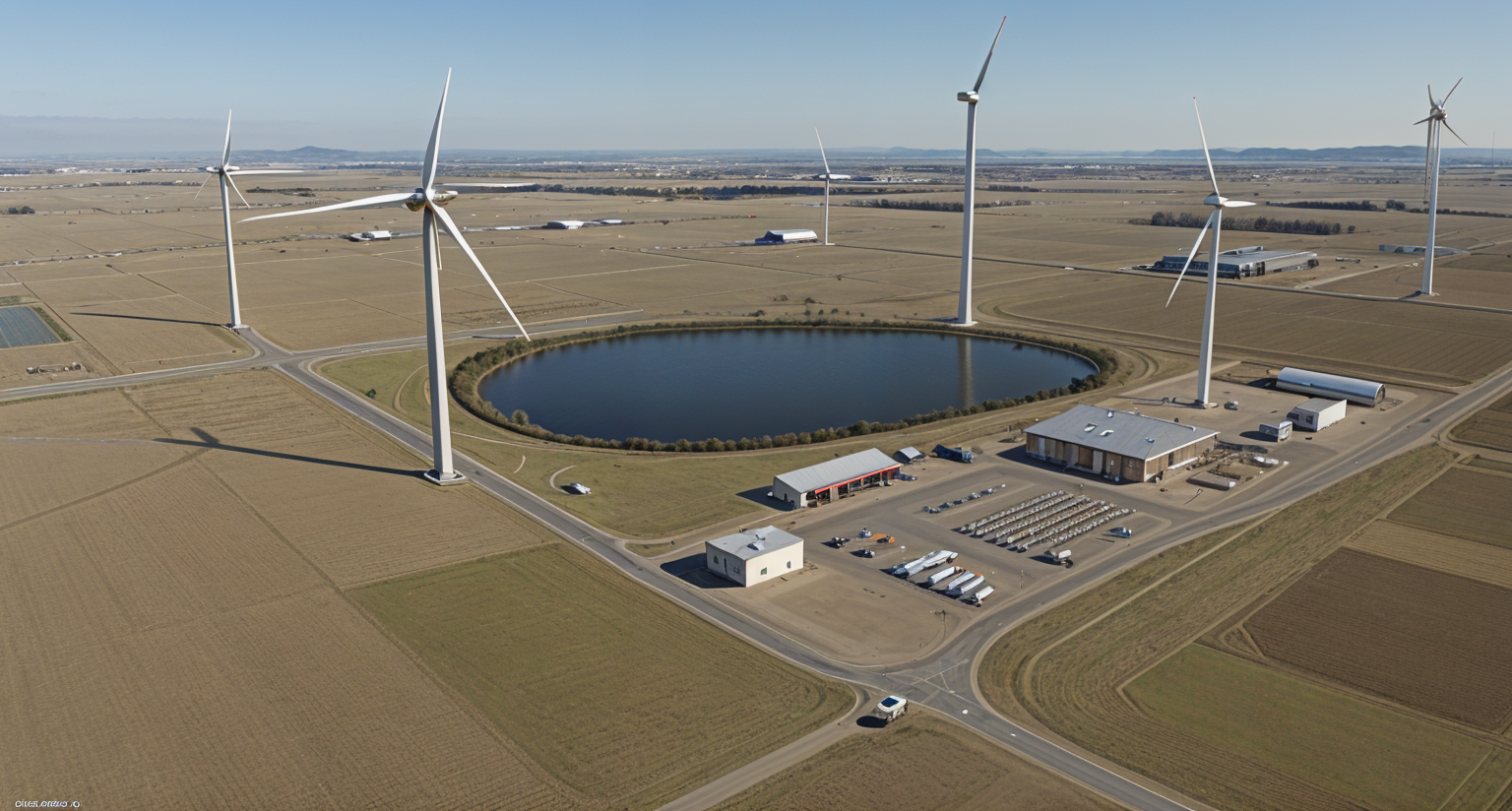 im designing a new min city on this site step by step i want to add to it step one the plan of the truck stop servo base it on the best truck stops in the world i want to make it a 500 hundred acre site add 10 wind farm turbines great now nmake the wind trubines smaller as a group only 50n small er 6000mm blade diameter add a big dam in the middle of the property for a fish fsrm adfd 20 ntesler bateries as a link to a new data centre go back one step the bomerang dan is better generste that