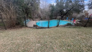 fill in entire grass area with a deep green artificial turf add a one foot tall steel edge against the fence line
