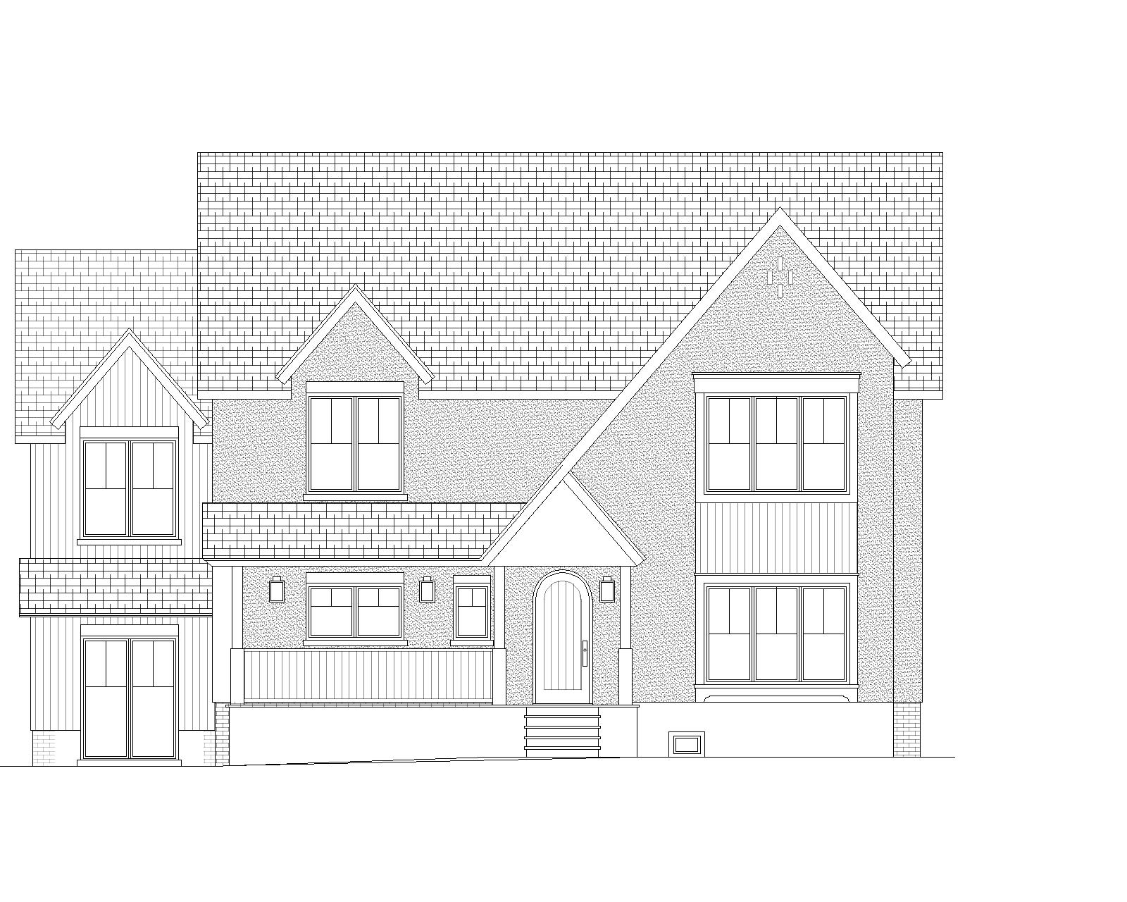 create a photorealistic exterior rendering of a modern tudor home in the summer with evening lighting