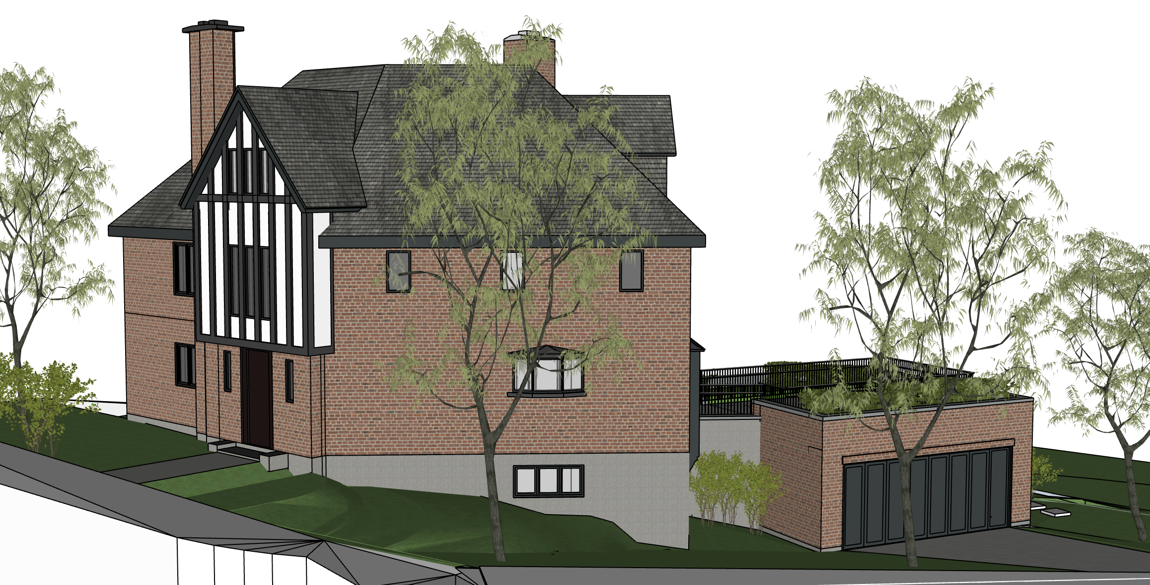 architectural rendering watercolour style saturated keep brick tones as is smooth out grass so it all seems level