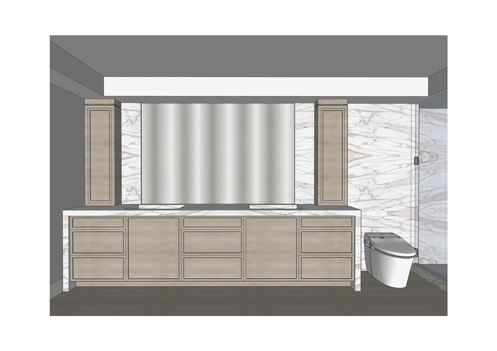 transform the provided elevation into a hyper realistic interior photograph that is indistinguishable from a real professionally shot interior design photograph this must read as a real space captured by a camera not a rendering not a visualization not architectural cg not concept art and not an illustration geometry lock non negotiable preserve the exact original geometry layout proportions ceiling details wall depths panel divisions openings doors cabinetry locations millwork dimensions built ins and circulation paths with zero architectural changes nothing may move scale simplify or be reinterpreted geometry must remain absolutely unchanged camera derivation critical derive the camera position height angle and framing strictly from the uploaded elevation eye level interior photography centered or naturally balanced composition 24 35mm interior lens feel no dramatic angles no stylized framing do not reuse or approximate camera framing from any previous image remove all drawing artifacts completely remove all linework cad edges drafting outlines diagrammatic shapes sketch artifacts nothing may appear outlined flat schematic or illustrative the elevation must be visually reinterpreted as a finished real interior photograph material realism rules wood if present smooth solid plank material extremely subtle restrained grain matte or soft satin finish only no graphic patterns no decorative striping no visual noise wood must absorb light gently never glossy or sharp fabric upholstery if present soft compression subtle seams gentle shadowing natural fabric texture no flat color blocks stone slabs if present light natural veining soft organic variation low contrast no symmetry no bold or busy patterns stone must feel heavy and grounded walls fine surface texture slight tonal variation never flat paint edge construction realism all edges corners joints and transitions must be softly broken and physically realistic no razor sharp corners no cgi perfect edges slight construction tolerances only everything must read as fabricated installed and dimensional lighting photographic behavior lighting must behave like real high end interior photography natural daylight only unless otherwise specified realistic light bounce gentle shadow falloff uneven exposure distribution subtle brightness variation across surfaces avoid studio lighting uniform illumination over clean exposure global illumination look slight softness is preferred over sharpness camera image imperfections very important introduce subtle photographic characteristics gentle lens softness micro exposure variation natural contrast roll off mild atmospheric depth primary plane sharp background slightly softer the image must feel captured not generated absolute constraints no creative interpretation no stylization no exaggeration no added or removed elements any deviation from the original elevation geometry or intent is unacceptable negative prompt always include architectural rendering 3d visualization cgi unreal engine octane vray sketchup look flat textures graphic lines outlined edges over sharpened studio lighting concept art illustration ai look plastic materials glossy wood high contrast grain perfect symmetry do not change ceiling design