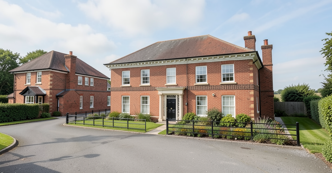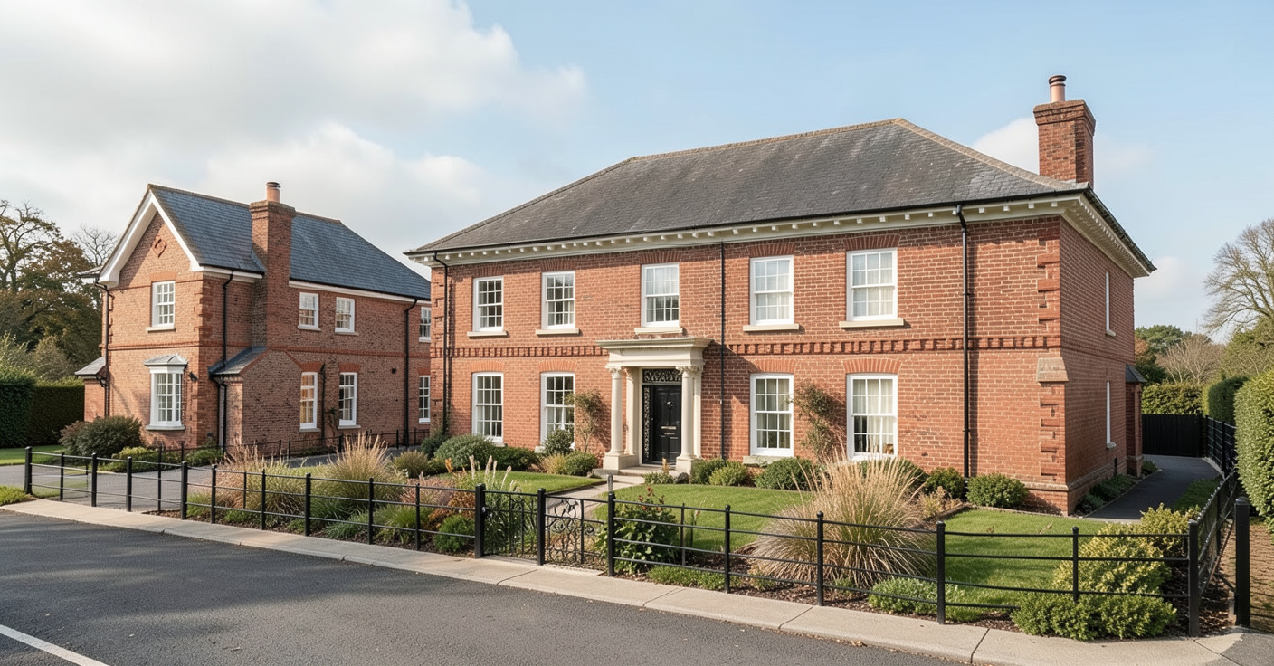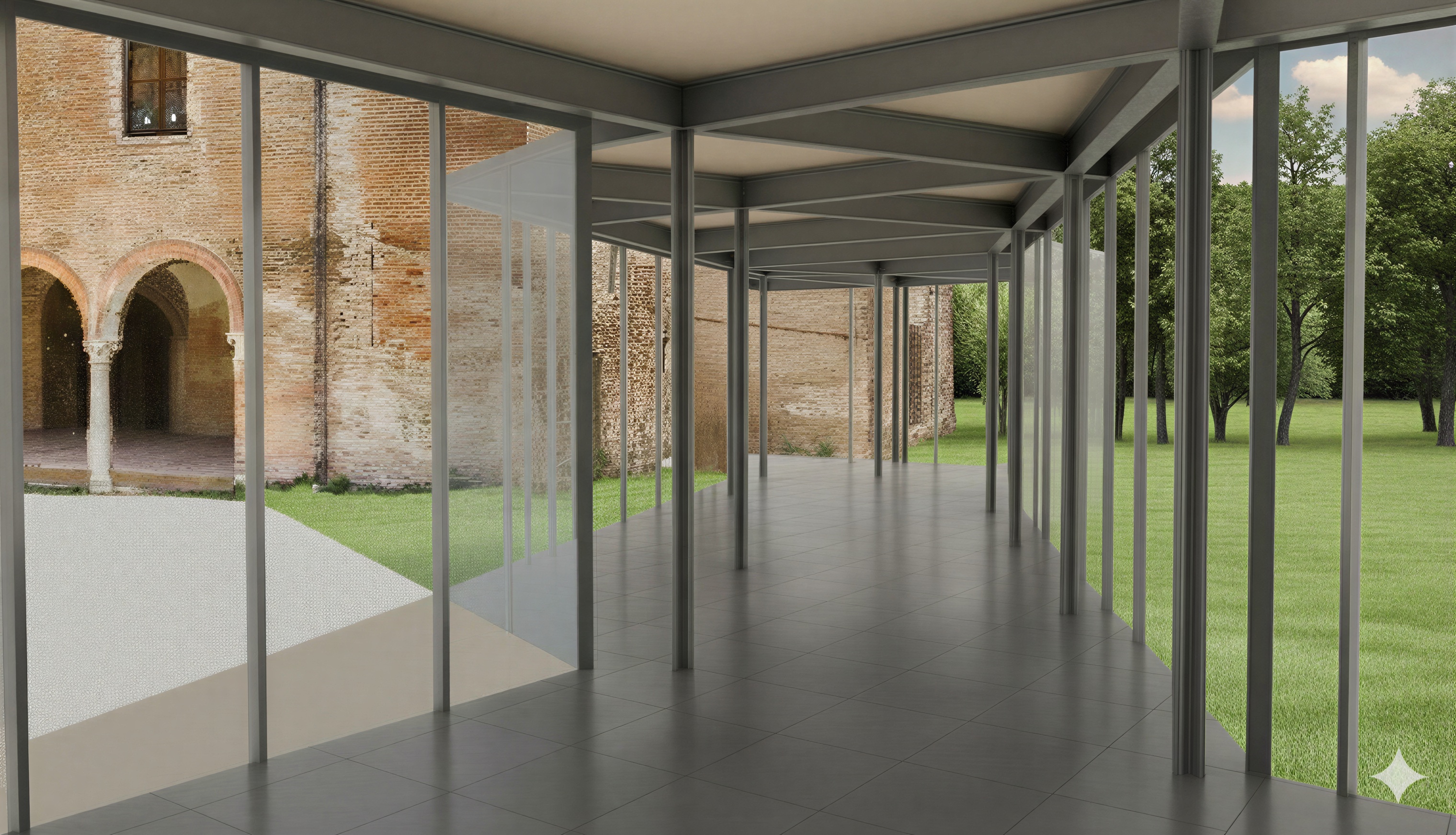 add large glass surfaces to the sides of the building with transparent and slightly reflective glass facades on the lateral elevations the glass should integrate seamlessly with the existing architecture preserving the original proportions materials and architectural style modern clean and elegant design with slim dark metal frames realistic natural lighting high quality photorealistic architectural rendering