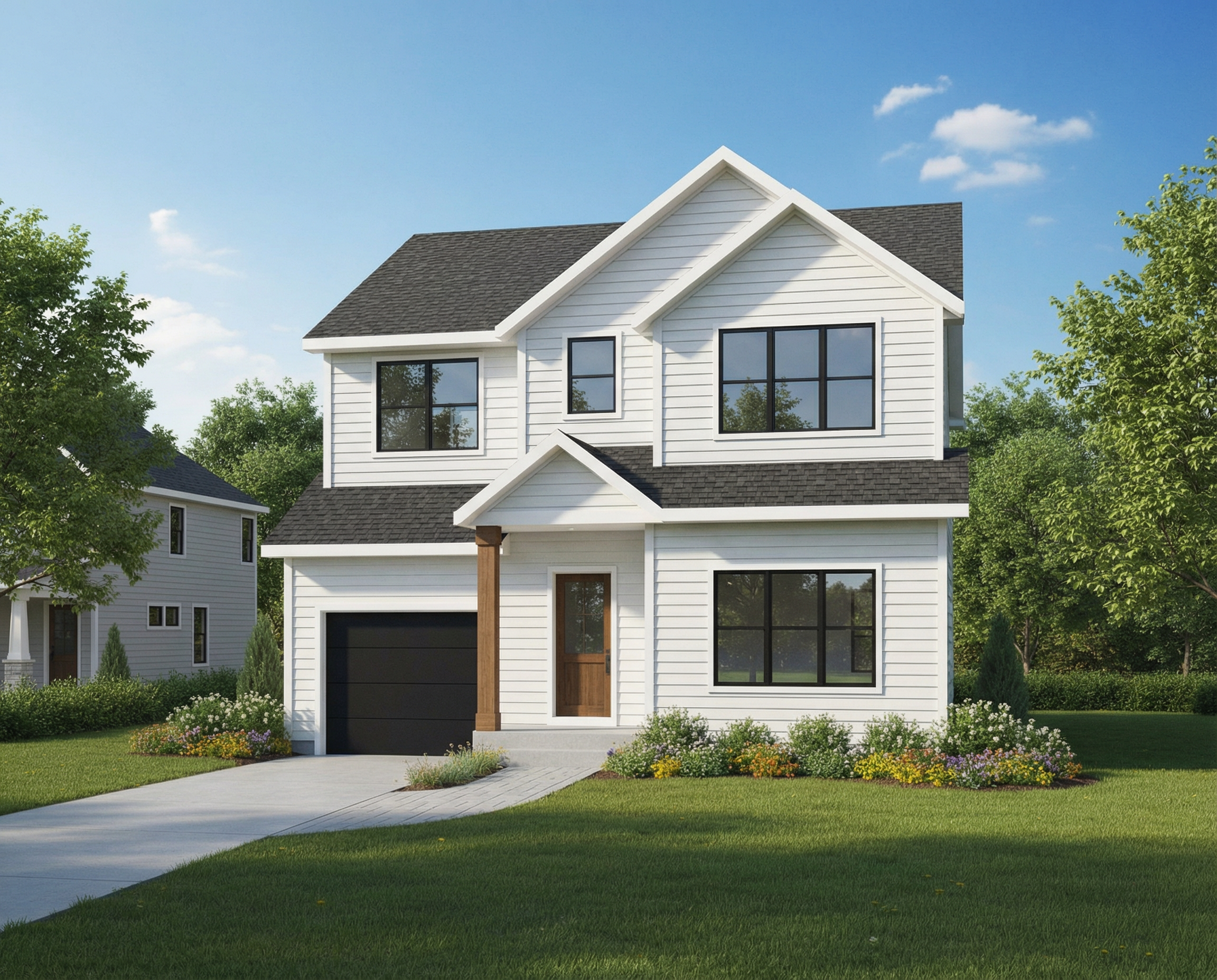 place bushes and mulch along the facade of the home only where brick siding is do not obscure the concrete walkway from the driveway to the front porch and place landscaping in between there do not place any along the drive way leading to the street or in front of the concrete walk to the home make bushes look young and not mature