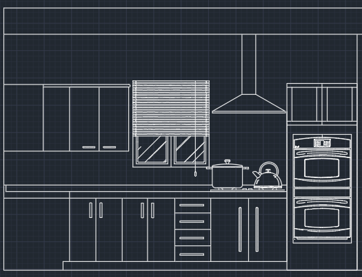 render the inside of this kitchen rendering using a clean modern natural color pallete like dark wood for the cabinets and white tile blackslash