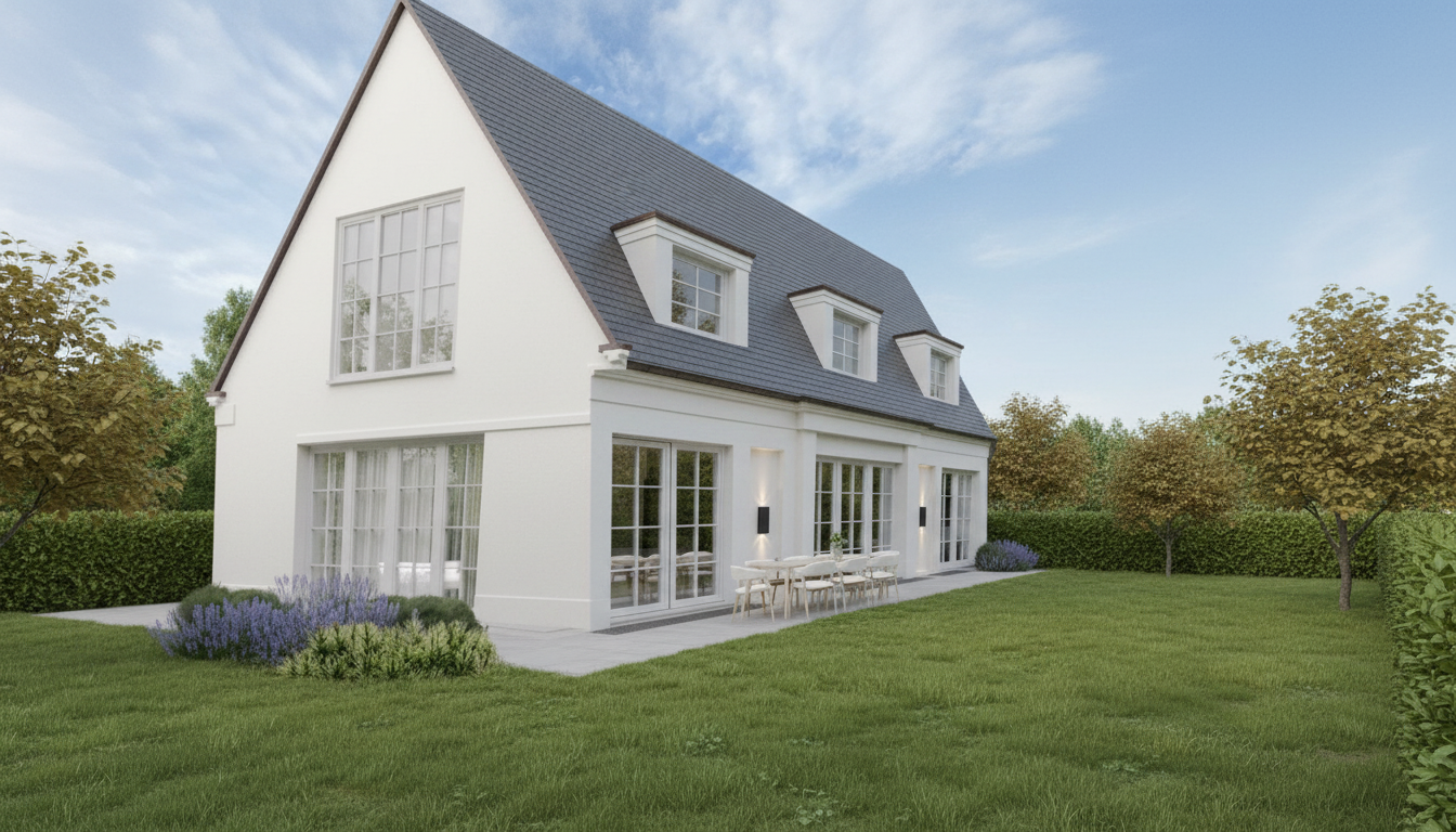 chairs has white legs add few trees outside on the left side next to terrace