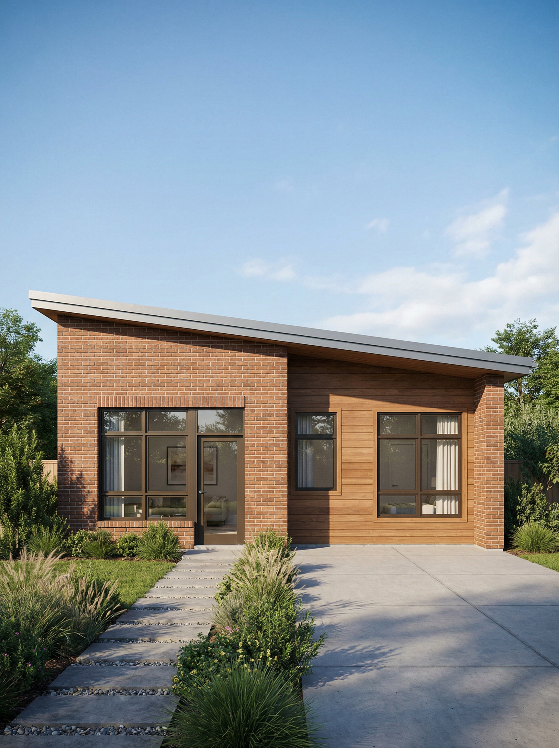 use the uploaded sketchup model as the absolute reference strict preservation mode do not modify the architecture do not change geometry layout proportions create elevations for this plan house is 20 wide x 30 long single story roof has a 2 12 pitch low side 30 wall on right is 8 high and high 30 wall on left is 11 5 high use the window positions that are on the floorplan