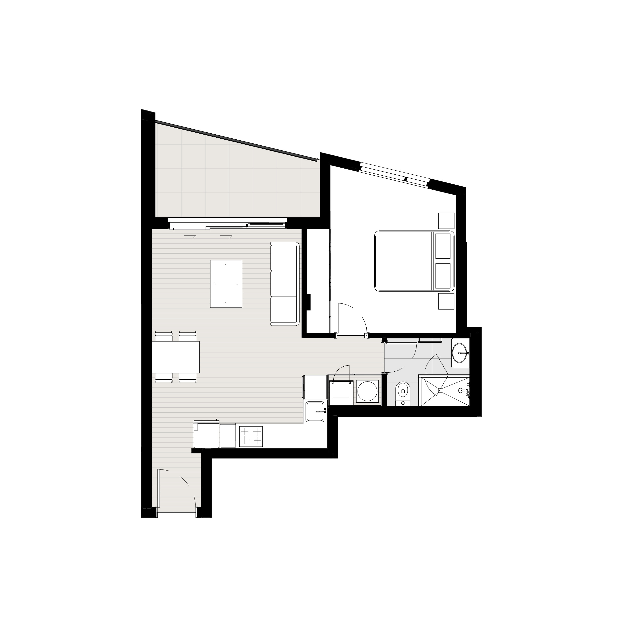 convert this floor plan into a realistic isometric 3d view of a full house show the space from an elevated angle with furniture walls and details visible use the same furniture as shows on the plan do not change the orientation of the floorplan