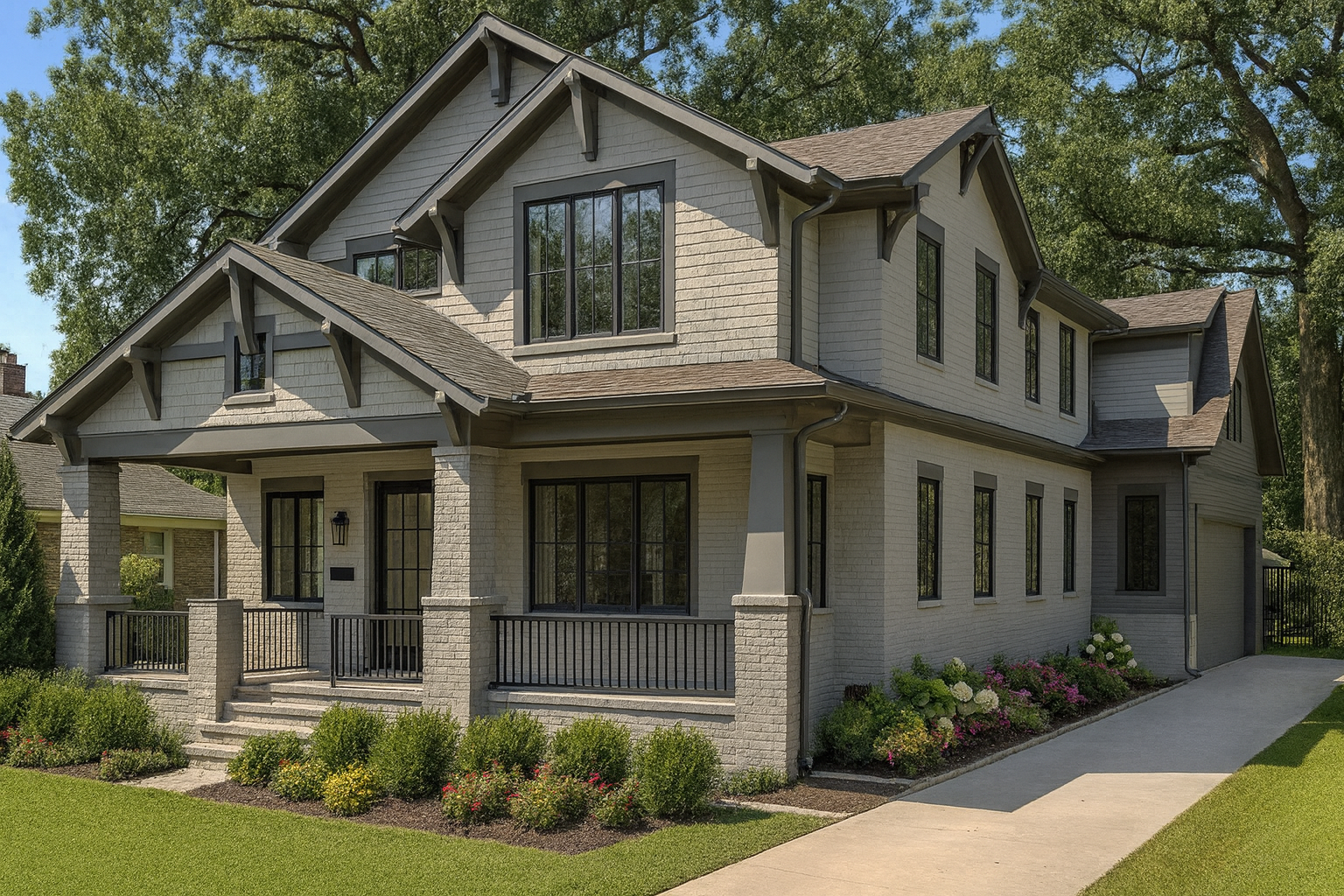 make architecture changes to the front of this house to make it more interesting maintain the colors landscaping and craftsman character