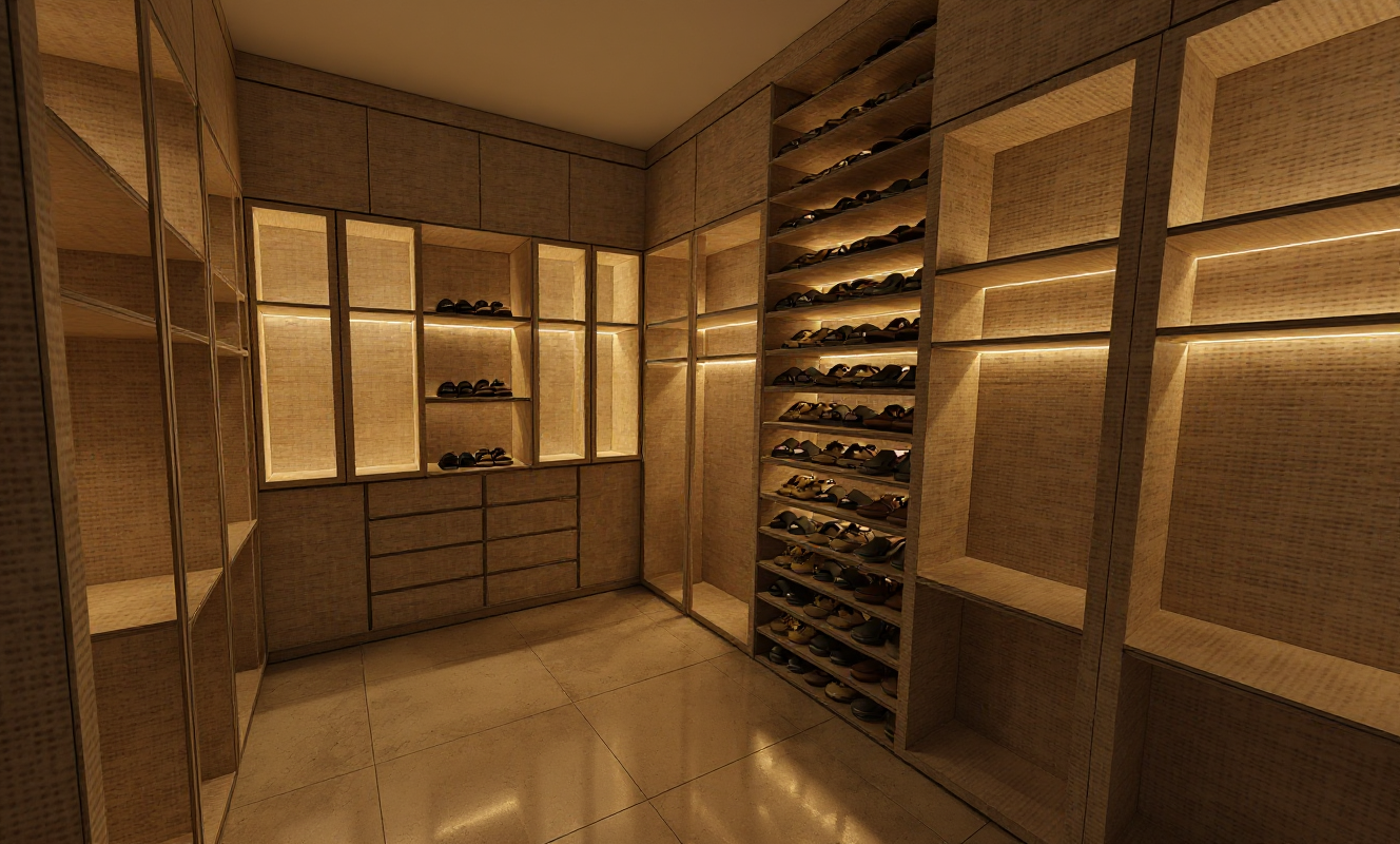 floors are an ivory matte porcelain there s led lighting in the cubbies add recessed lighting to ceiling