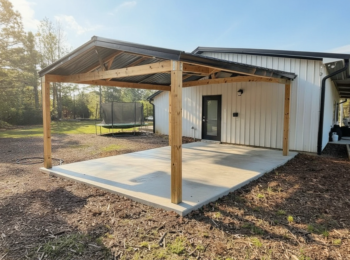 extend the concrete pad and carport back deeper so that it is spaced the same from the back as the front