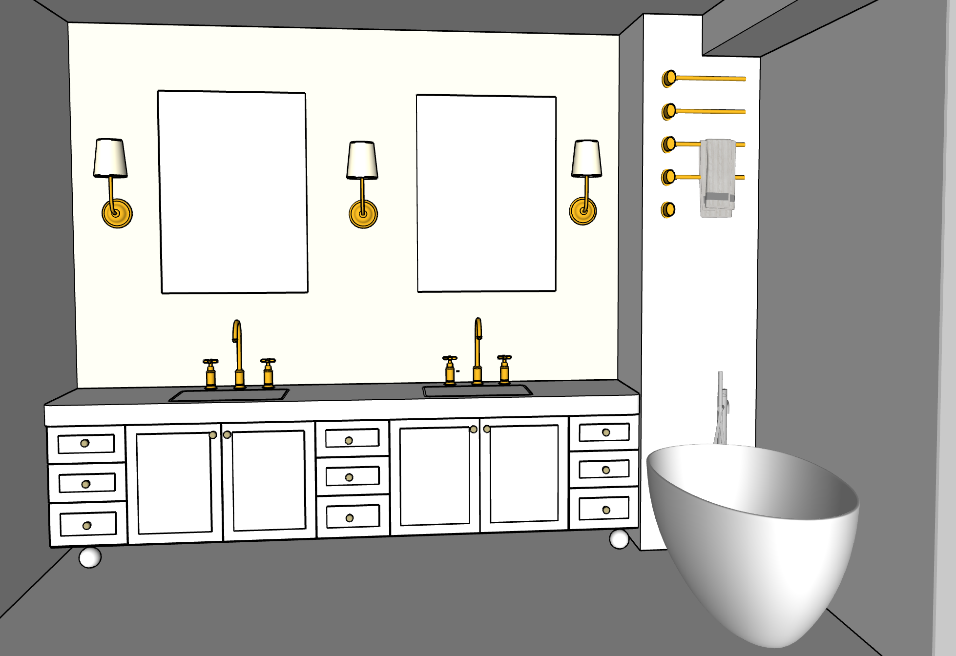 render it with light oak finish vanity white countertop light luxury floor vanity wall is off white color