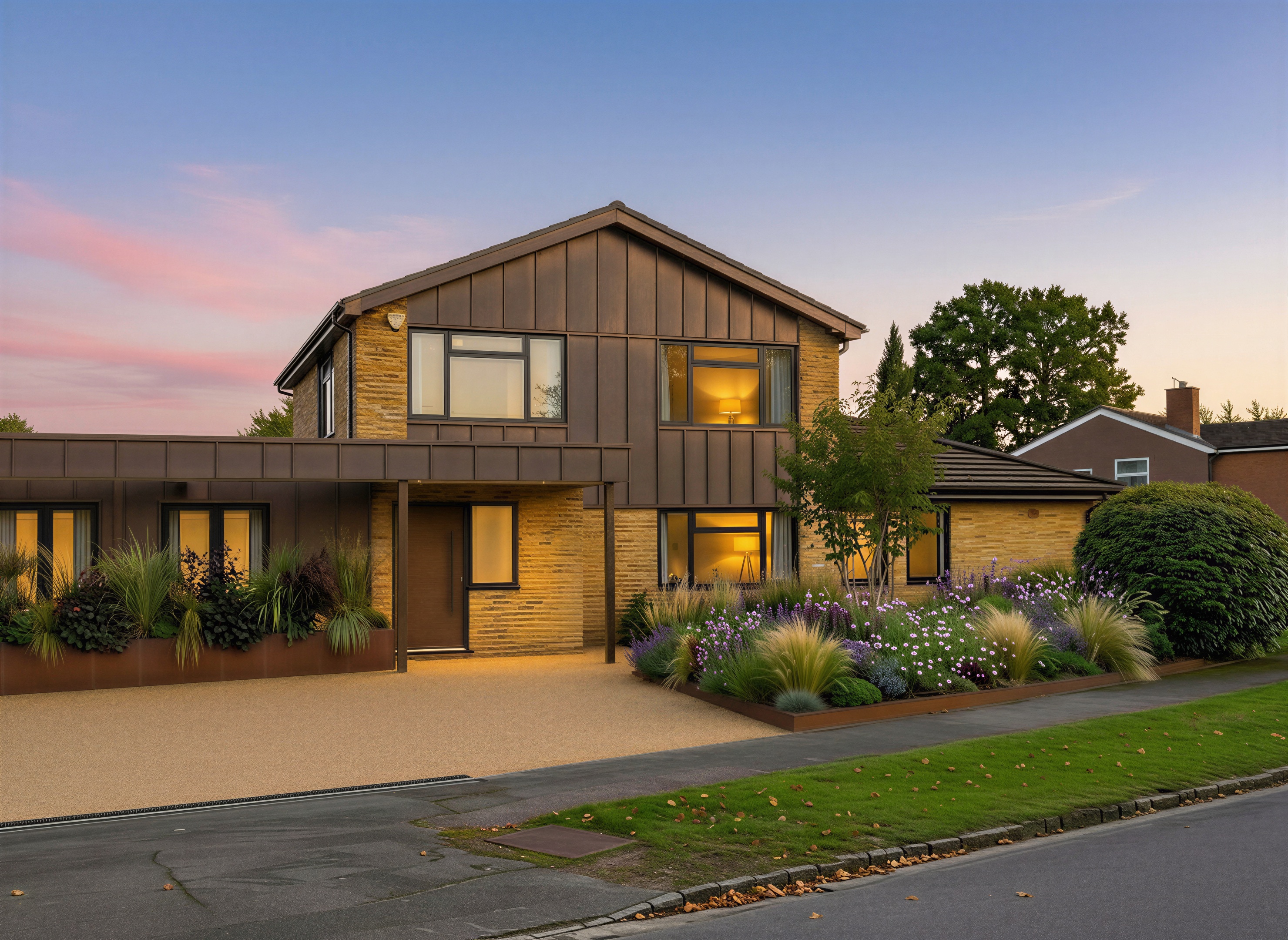 make the cladding a black slim line timber cladding make the windows black aluminum frame