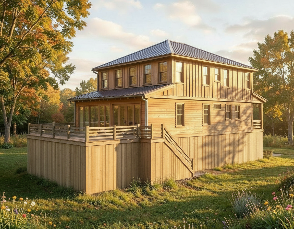 the house should have a white exterior with a silver metal roof and palm trees should be placed so that they do not overly block the view windows should be black copper gas lanterns on either side of the door and louvers between columns the columns are tabby concrete with oyster shells the pool is elevated on the back deck railings should be cable or metal horizontal a little less dense foliage around the house and show a larger backyard mid day lighting doors are double french 3 4 light medium brown stain