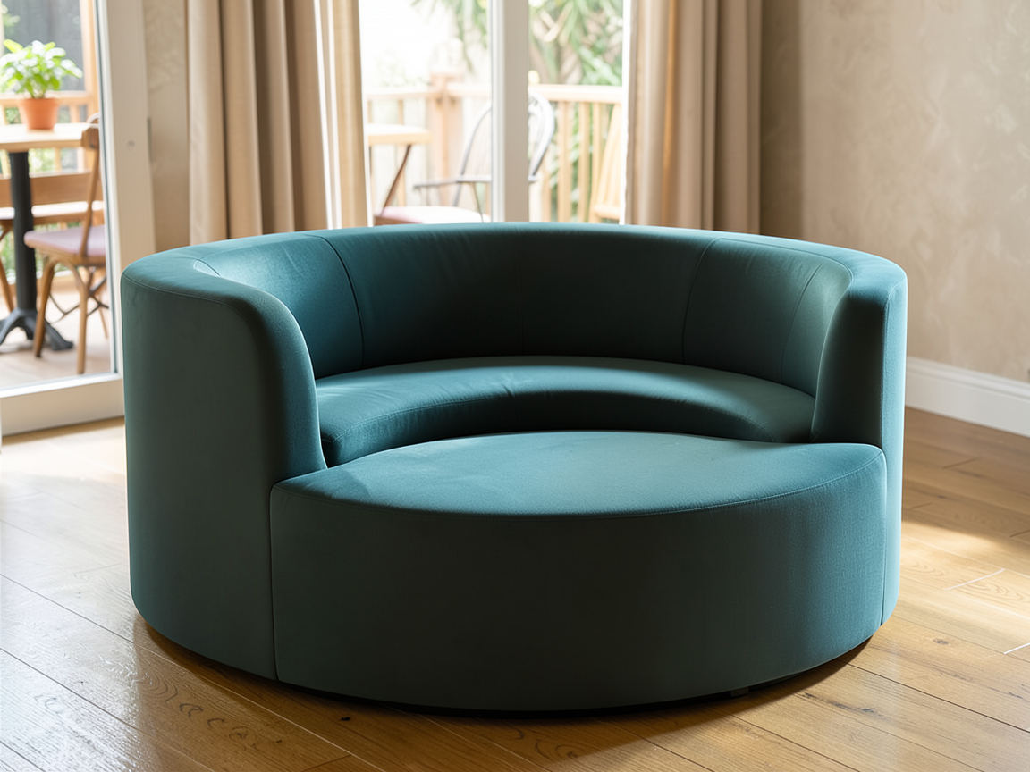 using this profile create a circular banquette sofa using this same profile as the arm ends of the sofa