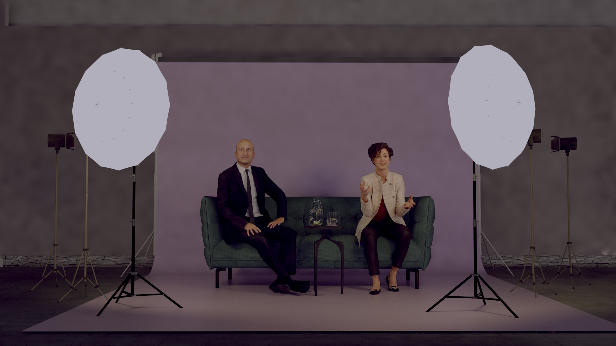 add more quality to the grey wall and texture the light is at night in a tv show with fog the cyclorama is lilac color and the lights are warm