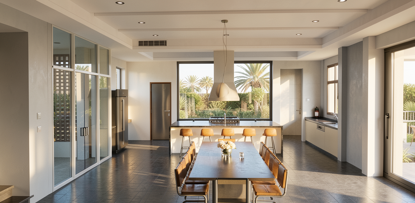 no modifiques texturas ni colores unicamente mueve la butaca y lampara a la esquina entre las dos ventanas