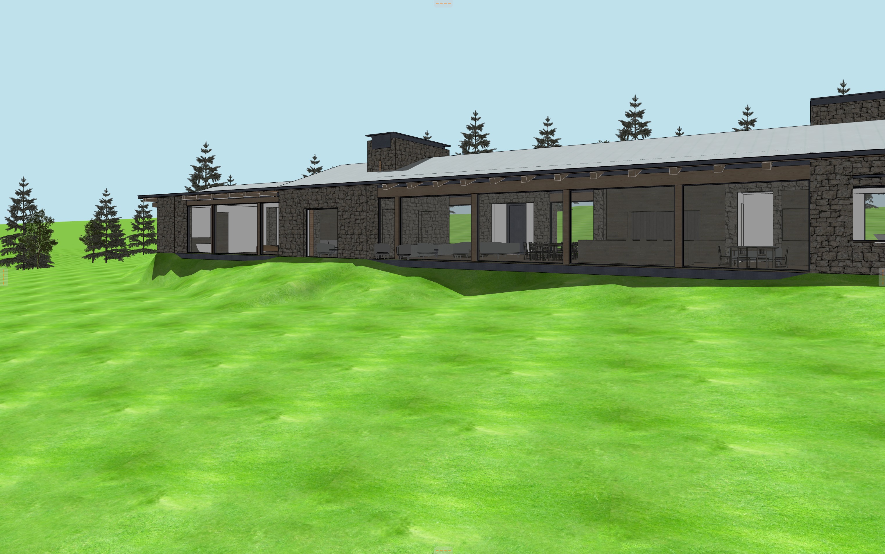 grassy idaho landscape rolling hills natural grasses and pine trees corten roof enhanced lighting