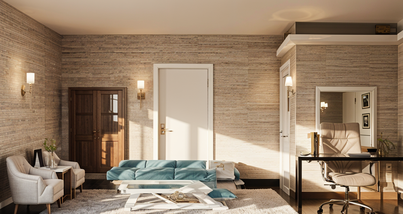 render this image to a highly realistic photorealistic quality with improved lighting shadows depth and material realism enhance resolution clarity and natural reflections while keeping all existing colours textures finishes and design elements exactly the same do not modify the colour palette materials layout furniture or architectural features only improve visual realism and rendering quality