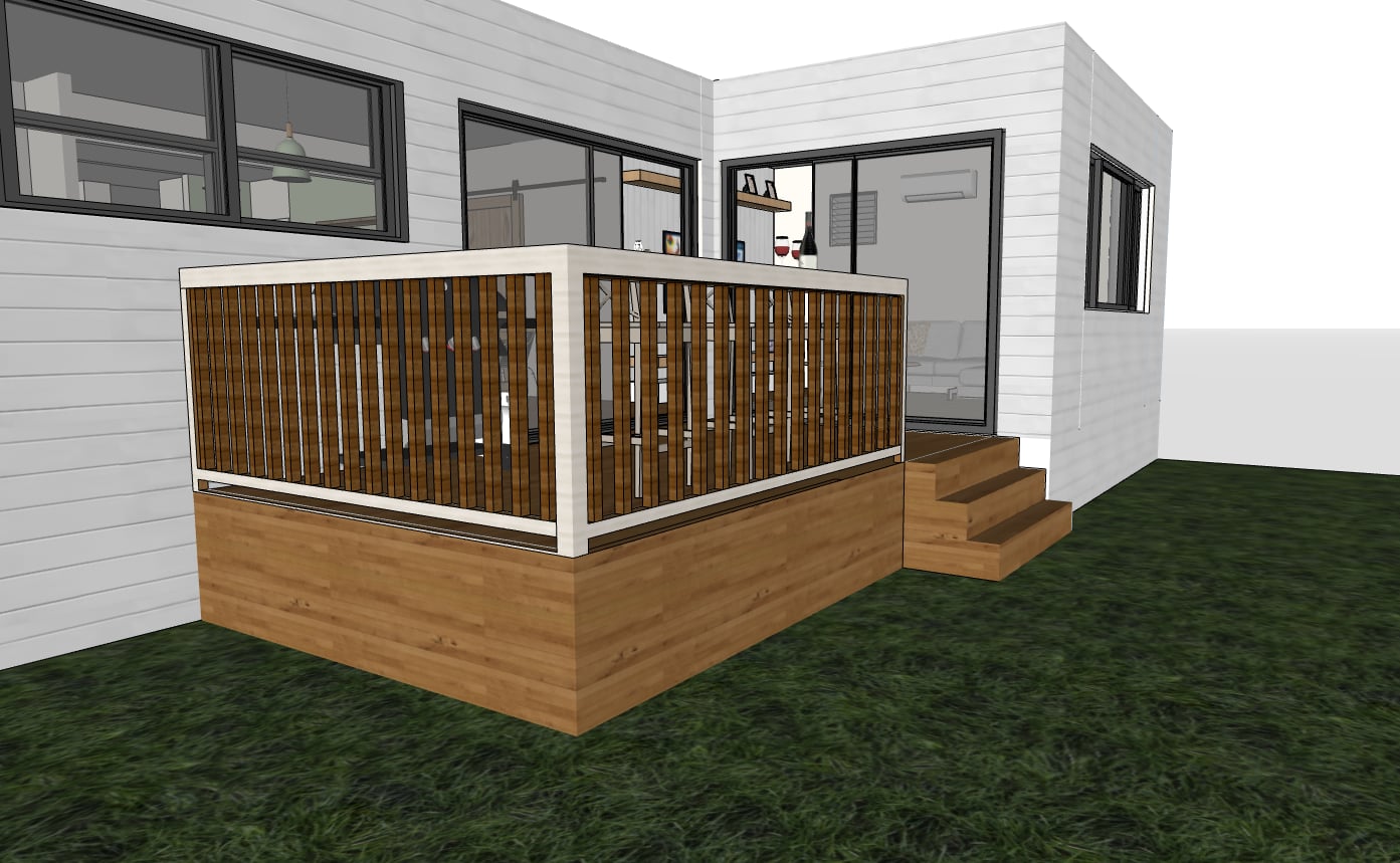 convert this image into a realistic 3d architectural render preserve all existing structures angles and proportions exactly as they are enhance the image with professional quality lighting shadows and textures for timber glass and landscaping maintain the original layout and design but make it look polished visually striking and like a high end 3d visualization