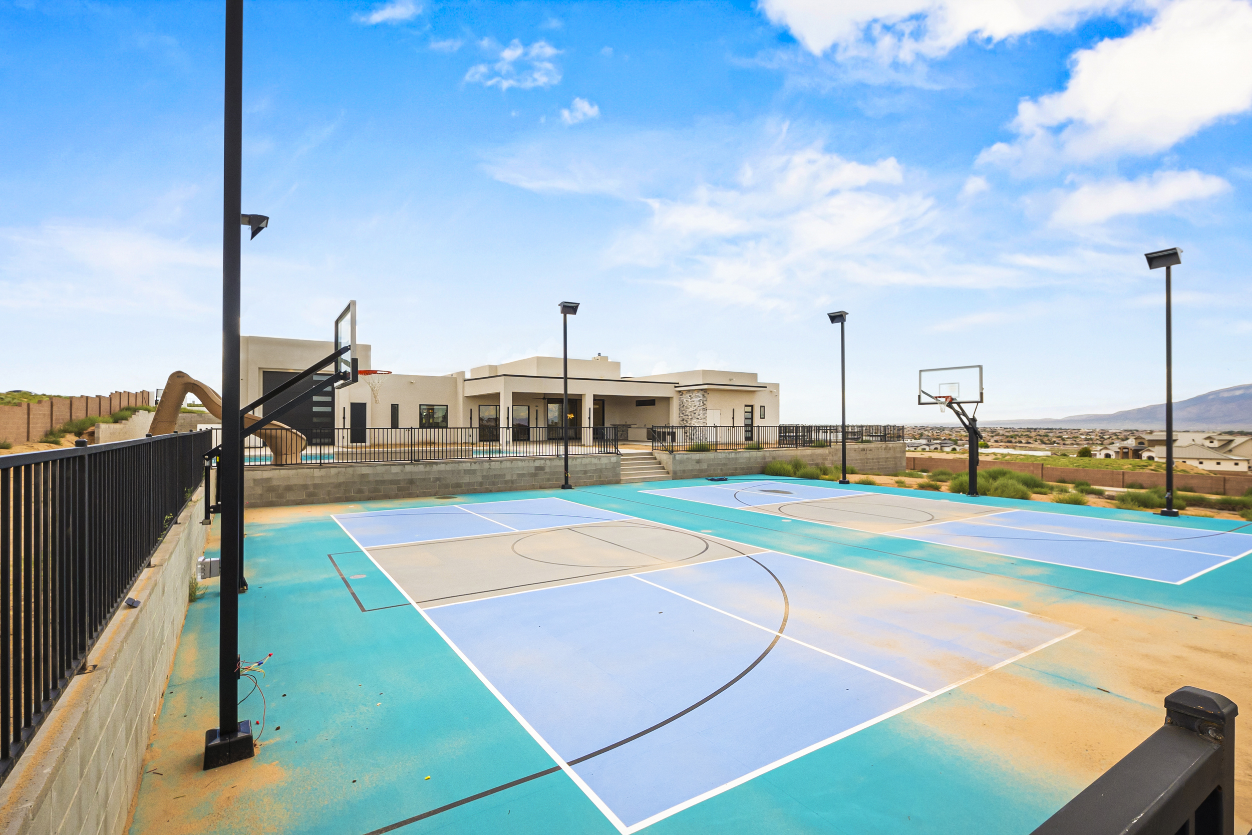 remove dirt from the blue basketball court