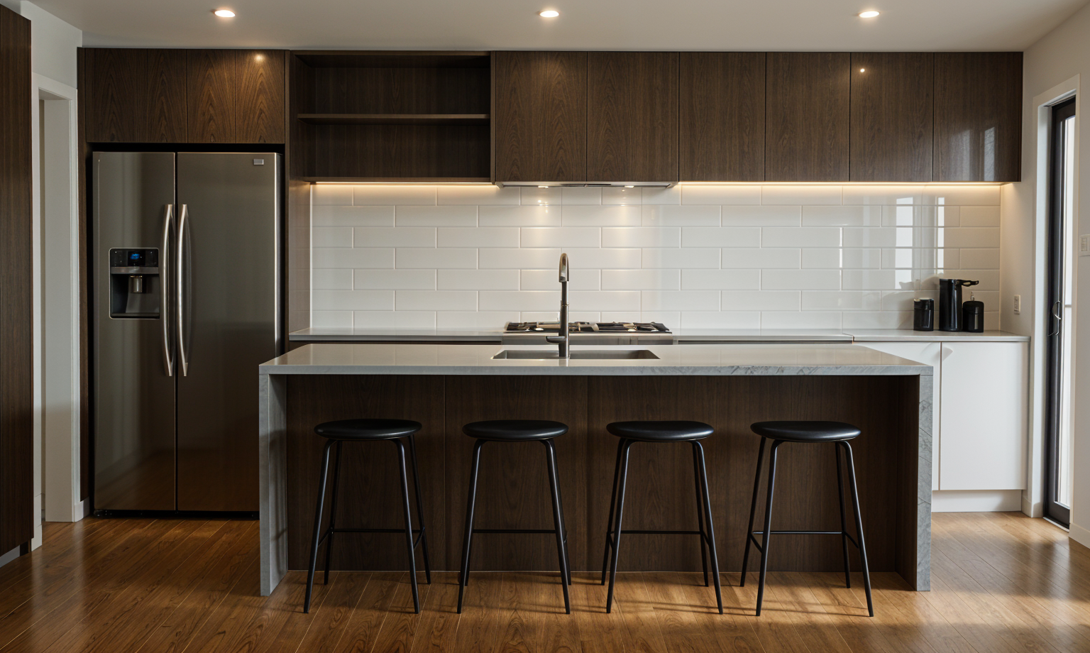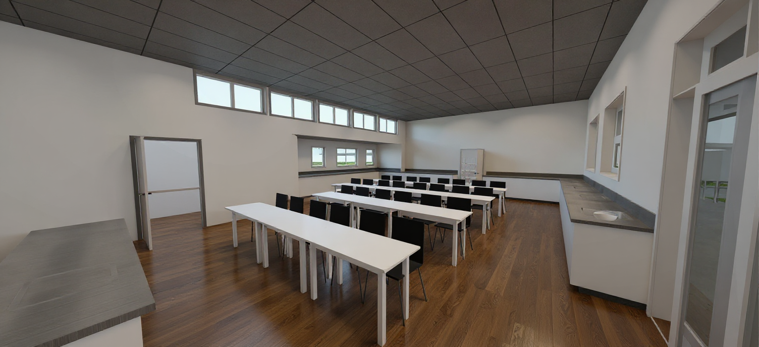 exterior shot ultra realistic architectural render with physically accurate lighting global illumination and soft natural shadows high resolution details subtle imperfections for realism and crisp reflections overcast cloudy sky with diffused daylight lush landscaping with natural variation sharp foreground photorealistic depth of field balanced contrast neutral color grading and true to life scale professional dslr perspective 35mm lens high dynamic range